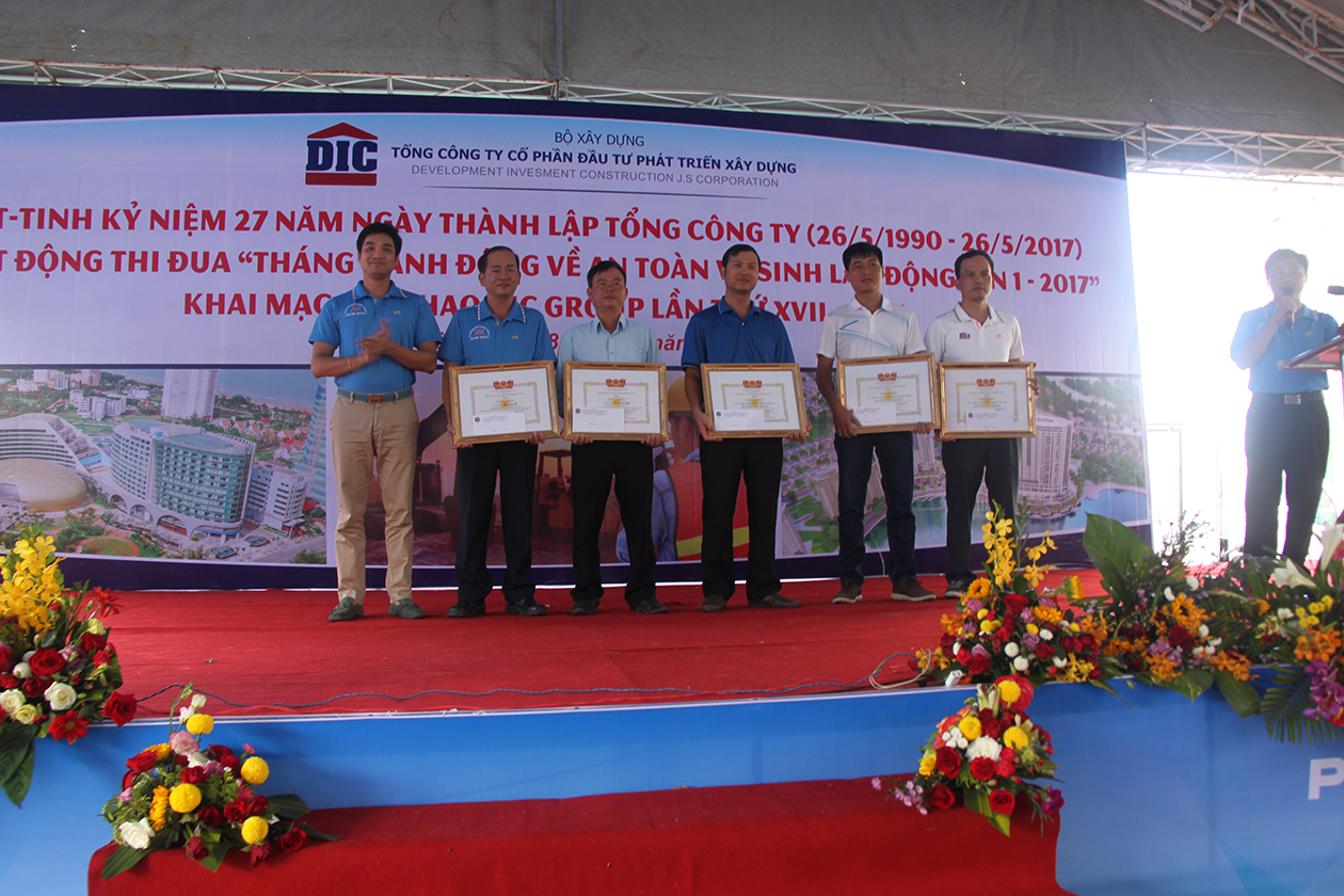 Nhân dịp này, 3 cá nhân và 3 đơn vị trực thuộc Tổng Công ty (DIC 4, DIC Bê tông, DIC 1) có thành tích trong công tác ATVSLĐ năm 2016 được tuyên dương và khen thưởng.
