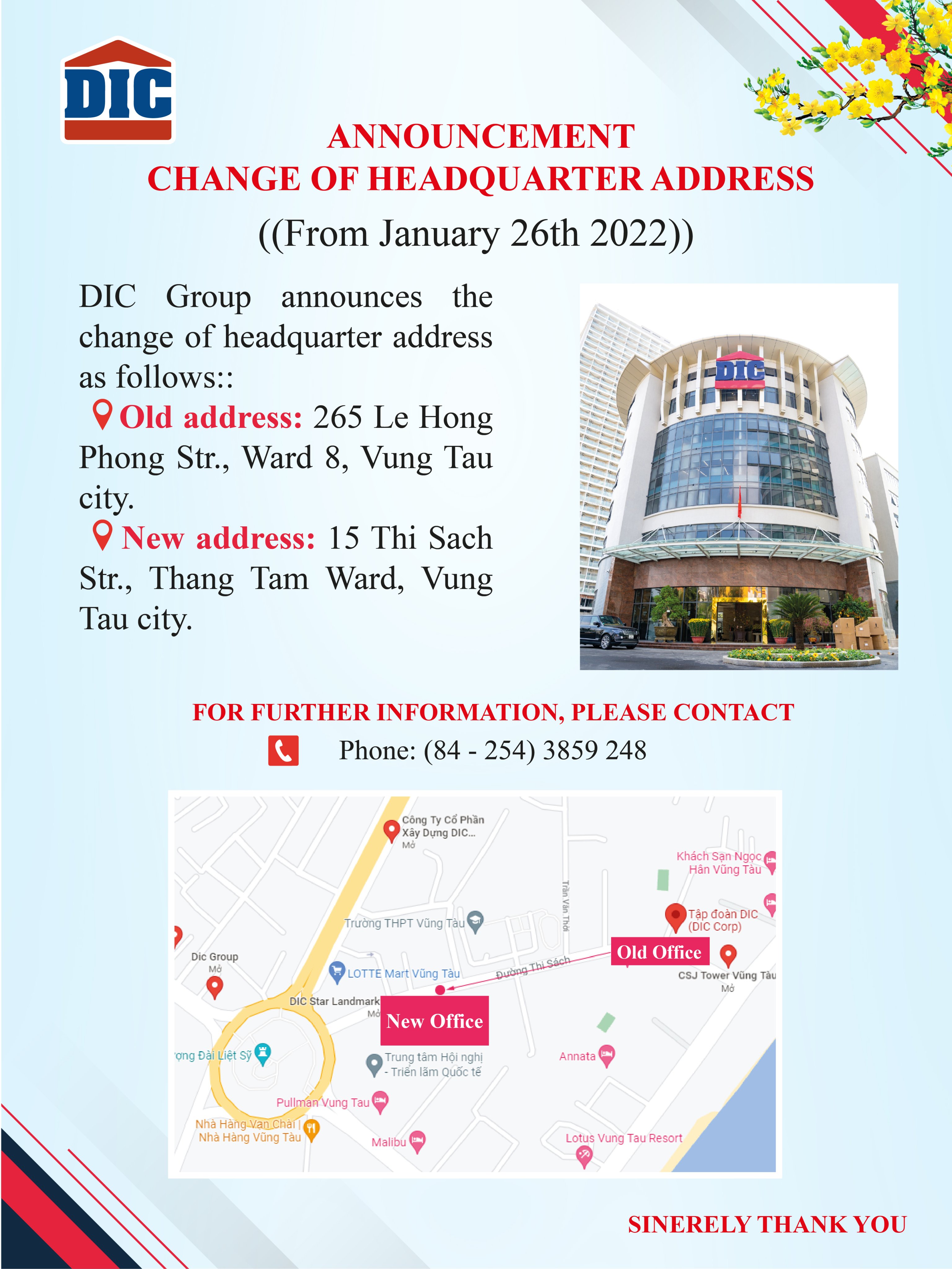 ANNOUNCEMENT CHANGE OF HEADQUARTER ADDRESS