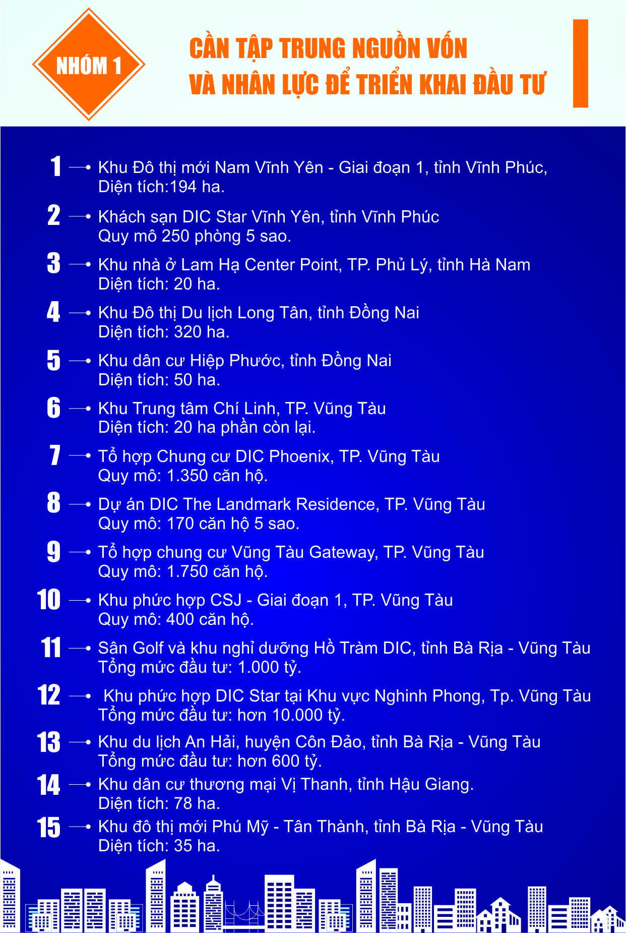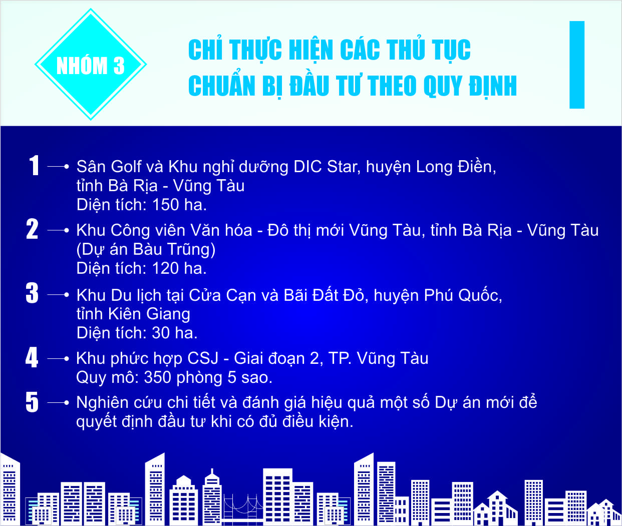 For the purpose of effective project investment in 2018 as well as create sustainable stability and prepare the resources for the following years, the Chairman of DIC Corp has divided projects investment into 03 groups.