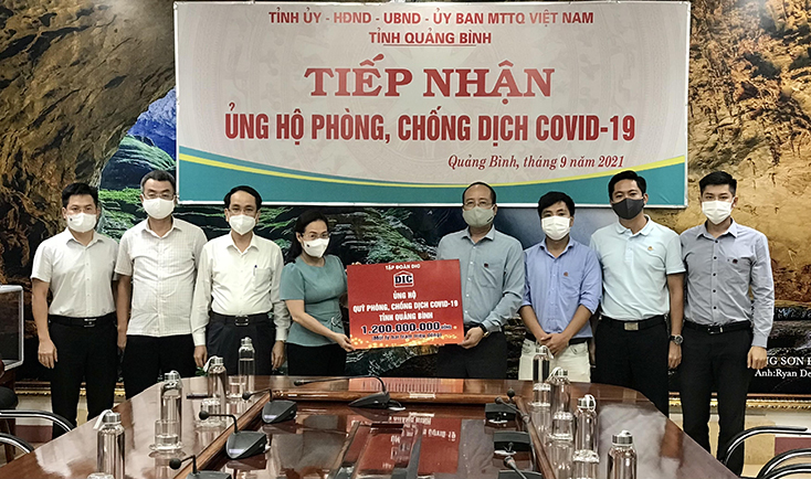 In the morning of September 23, the Vietnamese Fatherland Front Committee of Quang Binh province organized a reception to receive donation for the provincial Covid-19 epidemic prevention and control fund from DIC Group.