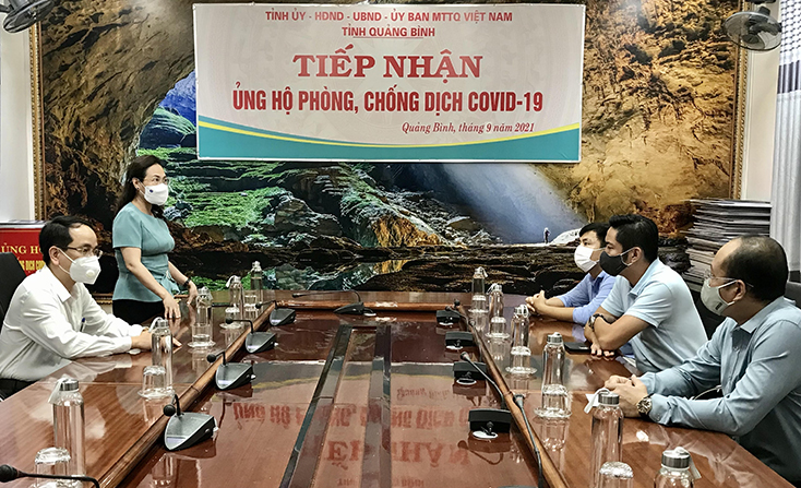 Speaking at the reception ceremony, Chairman of the Vietnam Fatherland Front Committee of the province Pham Thi Han informed the province's activities of receiving and allocating funds and the prevention and control of the Covid-19 epidemic in the past time.