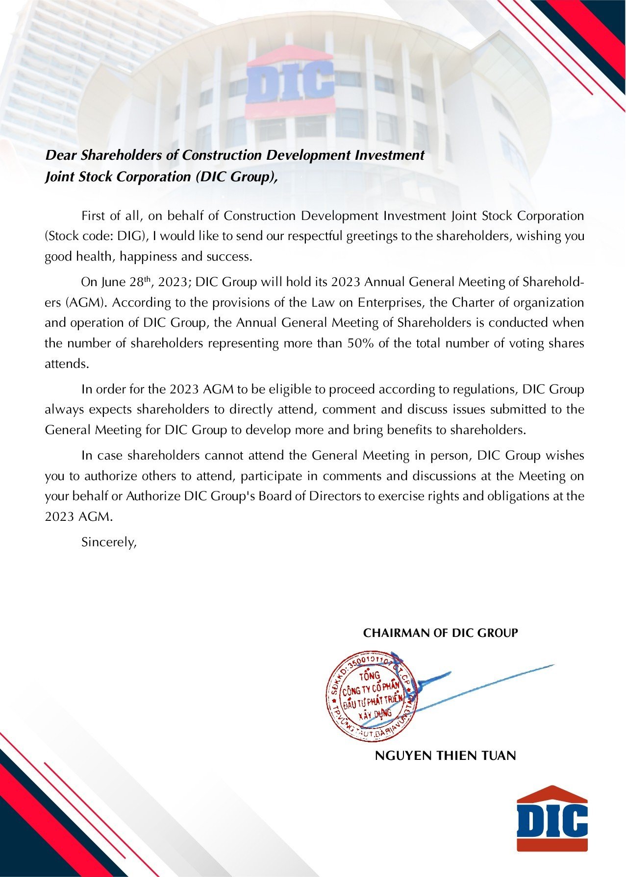 LETTER TO SHAREHOLDERS FOR ATTENDING DIG AGM 2023