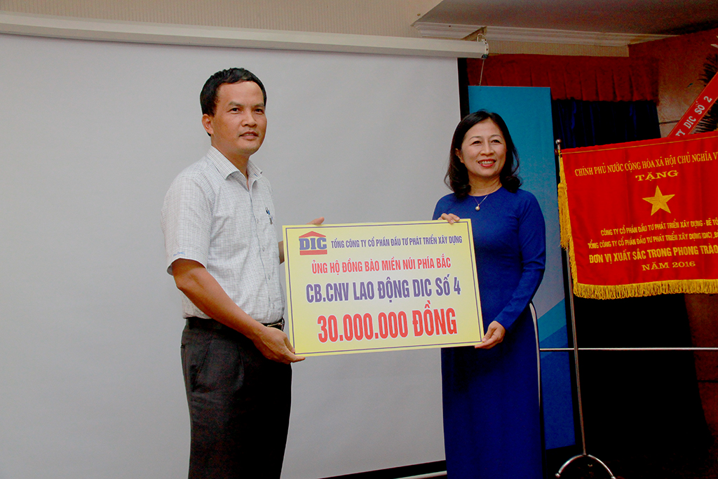 On the afternoon of 11th August, at the “Preliminary conference summing up business performance in the first 6 months of 2017” of the DIC Group, Mrs. Phan Thi Mai Huong , Chairman of Trade Union, officially launched funding campaign to support Northern mountainous people recovering from severe impact of natural disasters.