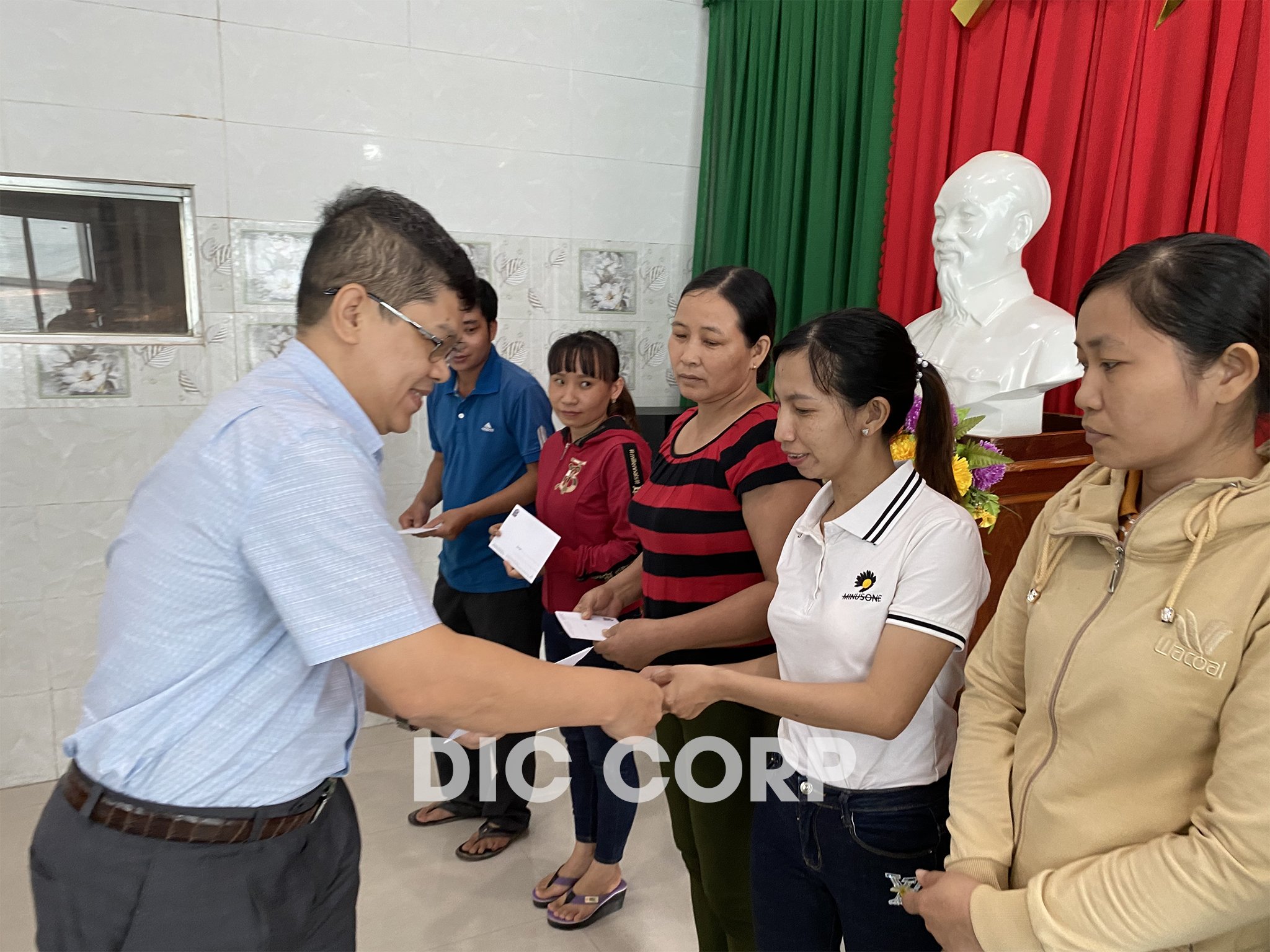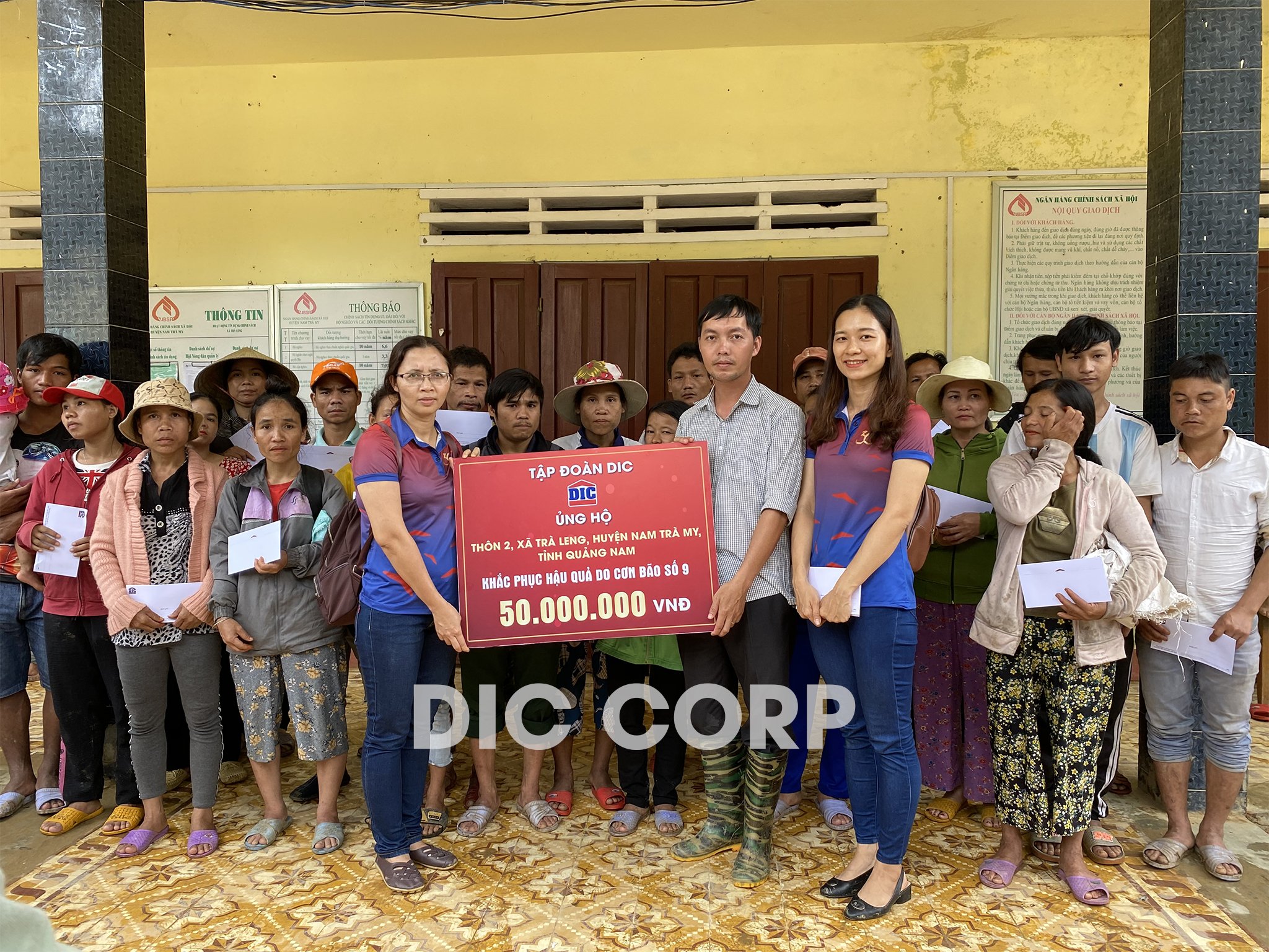 Tiếp nối các hoạt động chung tay hướng về đồng bào miền Trung đang phải oằn mình hứng chịu những thiệt hại nặng nề do thiên tai bão lũ gây ra; trong 02 ngày 24 và 25/11/2020, Tập đoàn DIC đã trực tiếp đến thăm, hỗ trợ gần 350 triệu đồng cho đồng bào tại xã Trà Leng, huyện Nam Trà My, tỉnh Quảng Nam và người lao động đang làm việc tại Công ty CP Gạch Men Anh Em DIC (DIC Anh Em). Số tiền còn lại được chuyển tới huyện Hướng Hóa, tỉnh Quảng Trị: 100 triệu đồng; huyện Quảng Ninh, tỉnh Quảng Bình: 50 triệu đồng.