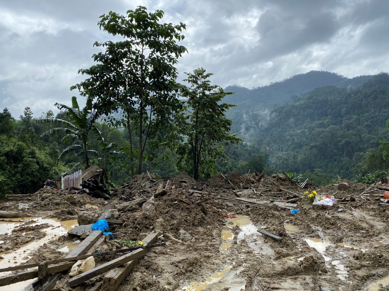 Hiện trường vụ sạt lở tại thôn 2, xã Trà Leng, tỉnh Quảng Nam