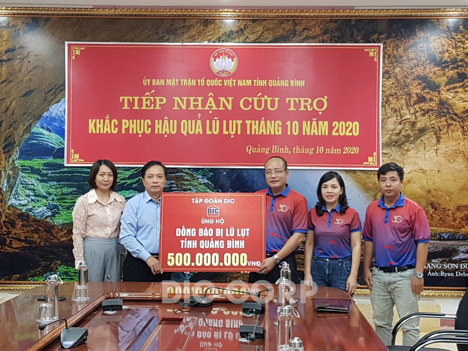 Trước đó, ngày 23/10/2020, Tập đoàn DIC đã ủng hộ 500 triệu đồng đến Ủy ban Mặt trận Tổ quốc Việt Nam (UBMTTQVN) tỉnh Quảng Bình với mong muốn được chung tay để cùng đồng bào nhanh chóng vượt qua khó khăn trước mắt, sớm ổn định cuộc sống sau khi bão lũ đi qua.