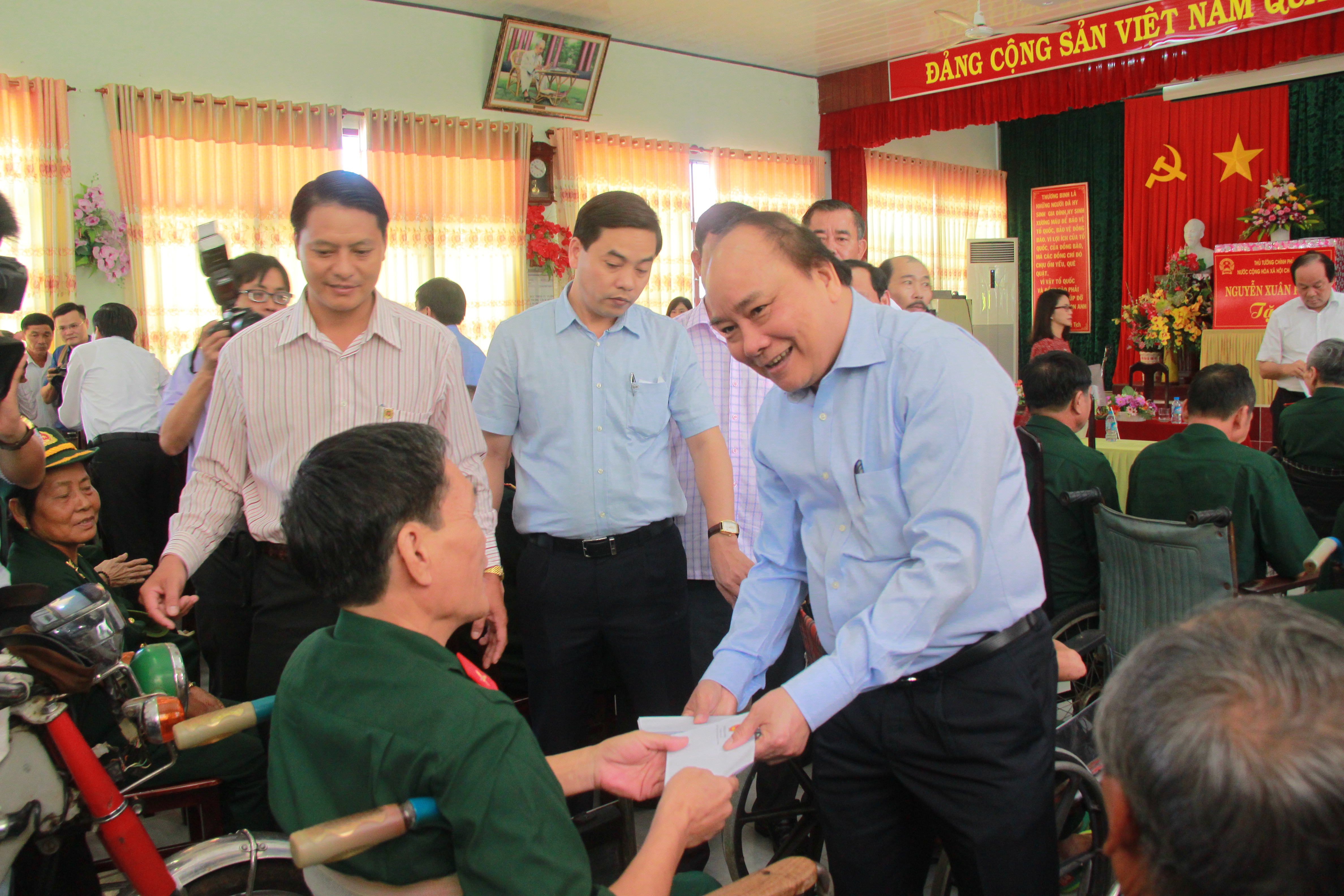 Thủ tướng Nguyễn Xuân Phúc hỏi thăm, bắt tay từng thương binh.