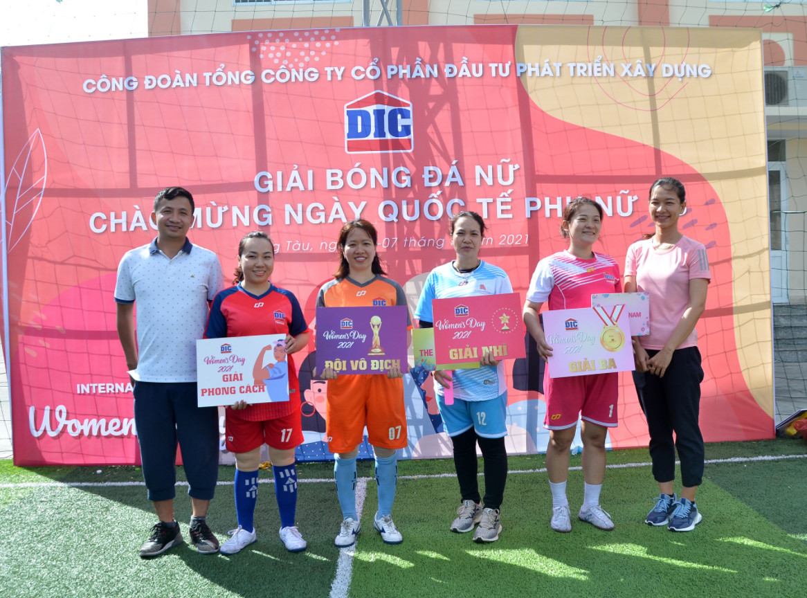 Giải bóng đá nữ năm nay thu hút 8 đội tham gia với hơn 100 nữ vận động viên đến từ các đơn vị: CĐCS DIC Corp, CĐCS DIC Phương Nam, CĐCS DIC Sport, CĐCS DIC The Landmark, CĐCS DIC Resco, CĐCS DIC Tourism, CĐCS DIC số 1 và CĐCS DIC số 2. Các đội tham dự thi đấu theo Luật Bóng đá mini 5 người và theo thể thức loại trực tiếp vào thi đấu các trận bán kết, chung kết.
