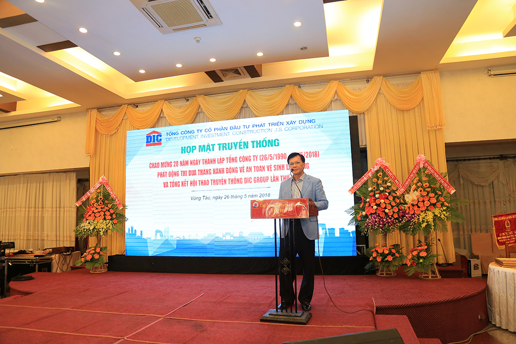 Tại buổi lễ, tập thể CB-CNV đã cùng nhau ôn lại những cột mốc làm nên lịch sử DIC. Tiền thân DIC Corp là nhà nghỉ Bộ Xây dựng với chức năng phục vụ nhu cầu nghỉ dưỡng cho CB-CNV ngành xây dựng phía Nam tại TP. Vũng Tàu. Qua hành trình 28 năm, DIC Corp đã vươn lên trở thành một tập đoàn hoạt động đa ngành, đa lĩnh vực với hệ thống 8 công ty con, 7 công ty liên kết và 9 công ty đầu tư khác, tổng số lao động khoảng 8.000 người (tính đến 31/12/2017). Hiện DIC Corp đang làm chủ đầu tư nhiều dự án quy mô lớn như: Dự án Khu đô thị Chí Linh (TP. Vũng Tàu); Dự án Khu đô thị mới Nam Vĩnh Yên (tỉnh Vĩnh Phúc) và các dự án tại Hà Nam, Đồng Nai, Hậu Giang, Phú Quốc – Kiên Giang… Đây là thành quả của tầm nhìn dài hạn và việc hoạch định chiến lược đúng hướng của HĐQT, Ban Điều hành cùng sự chung sức, chung lòng của tập thể CB-CNV.