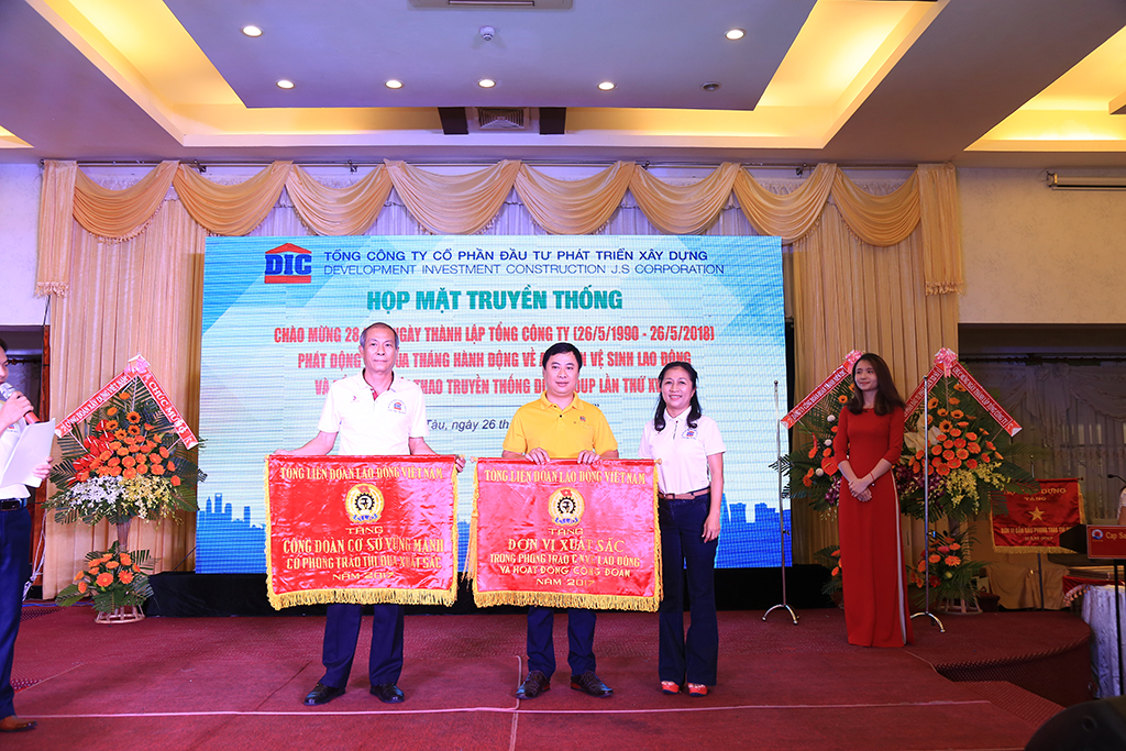 Công đoàn (CĐ) DIC Group, CĐ Cơ sở DIC Phương Nam nhận cờ thi đua của TLĐ LĐ Việt Nam vì đã có thành tích xuất sắc trong phong trào thi đua lao động giỏi và xây dựng tổ chức công đoàn vững mạnh năm 2017.