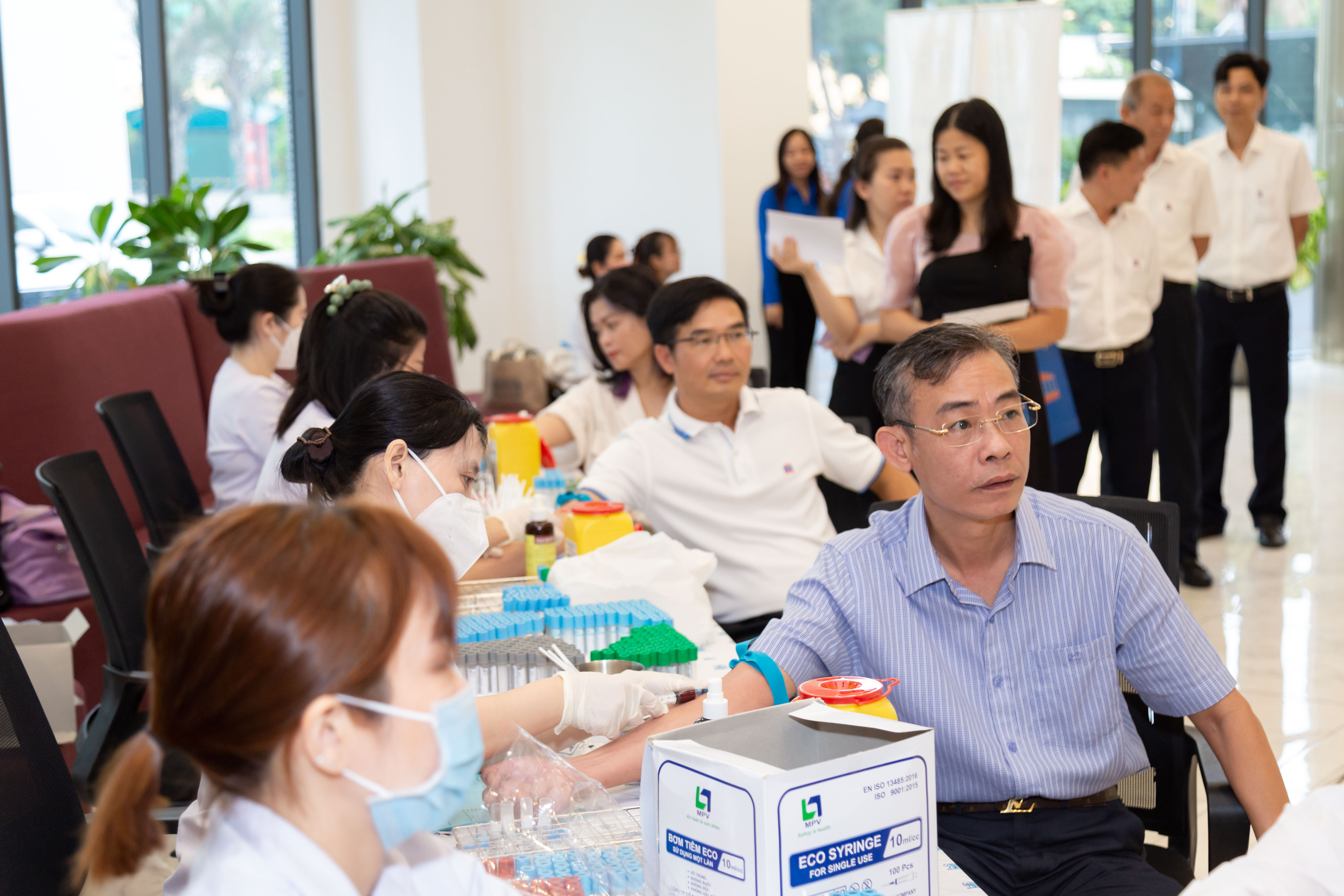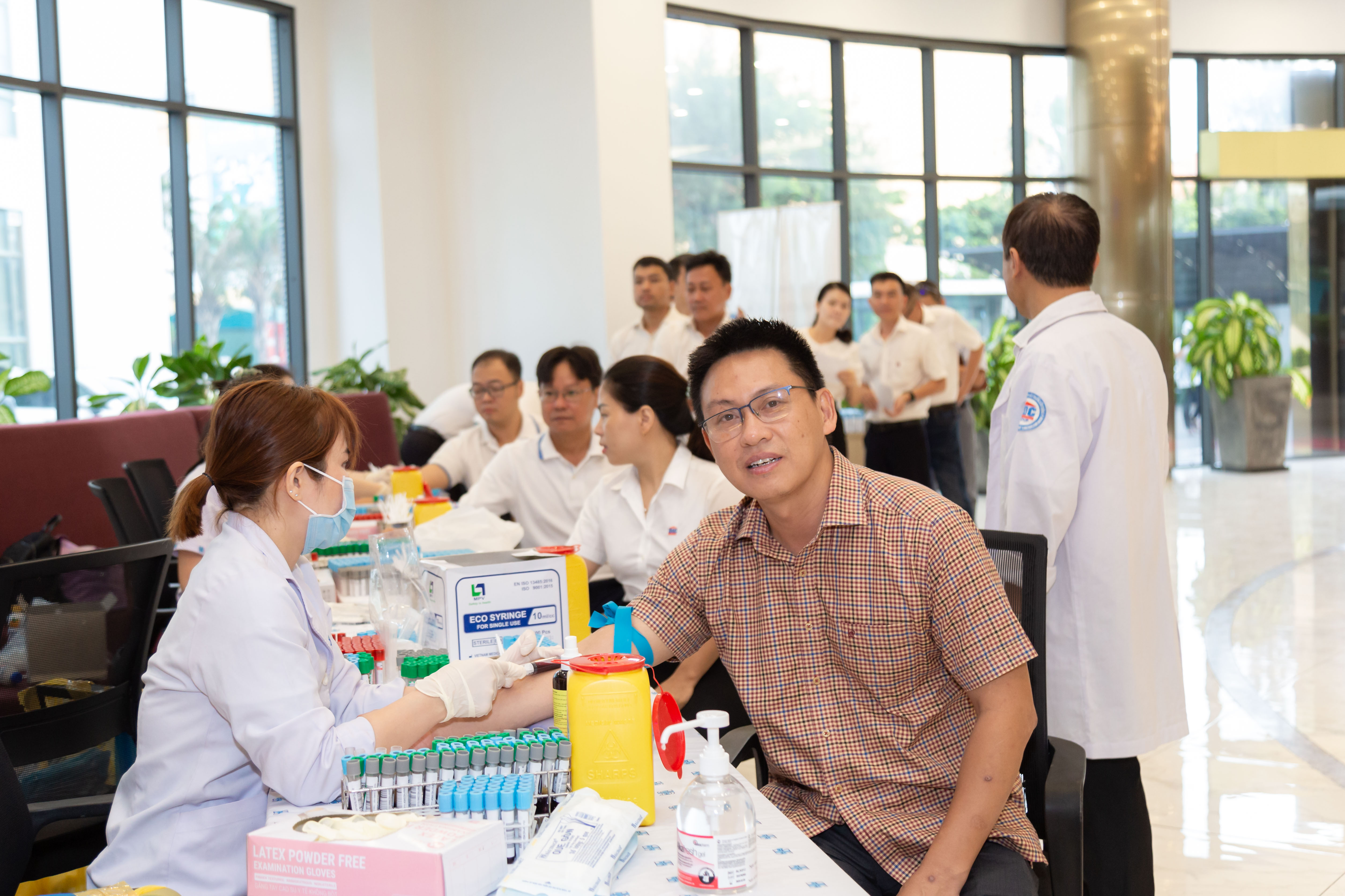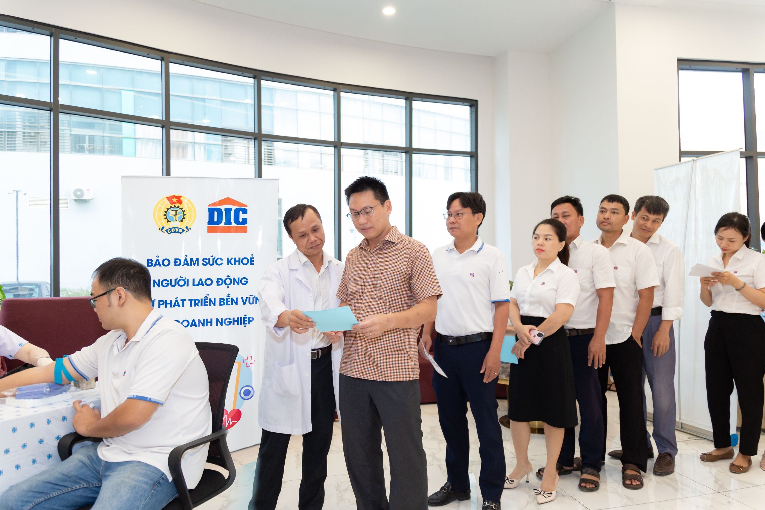 Một số hình ảnh hoạt động lấy máu xét nghiệm sáng ngày 15/7/2024 tại trụ sở Tập đoàn DIC: