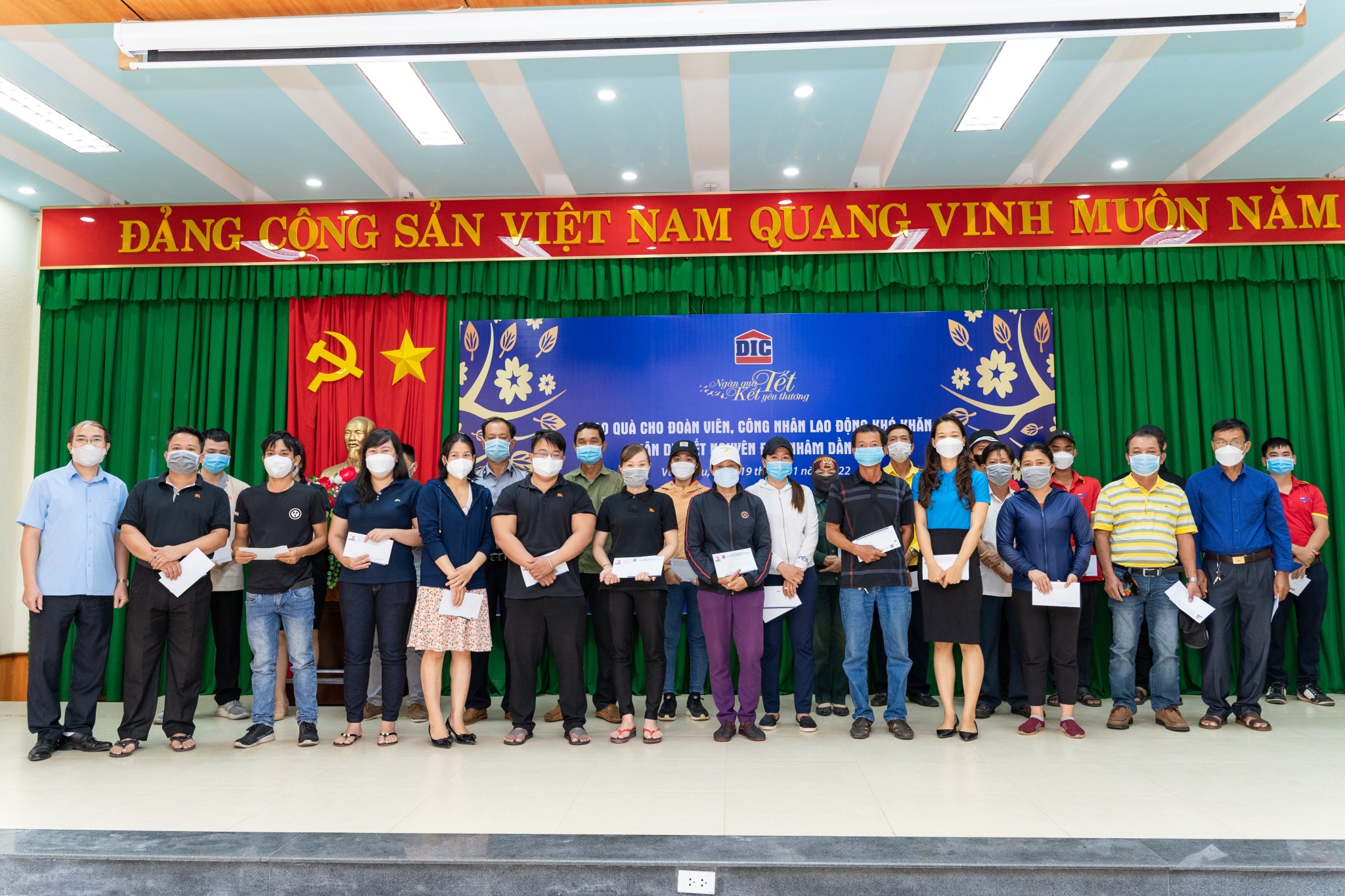Căn cứ vào đề xuất của các Công đoàn Cơ sở trực thuộc, Công đoàn DIC Group đã trao quà đến tận tay 200 đoàn viên, người lao động với tổng số tiền là 267 triệu đồng.