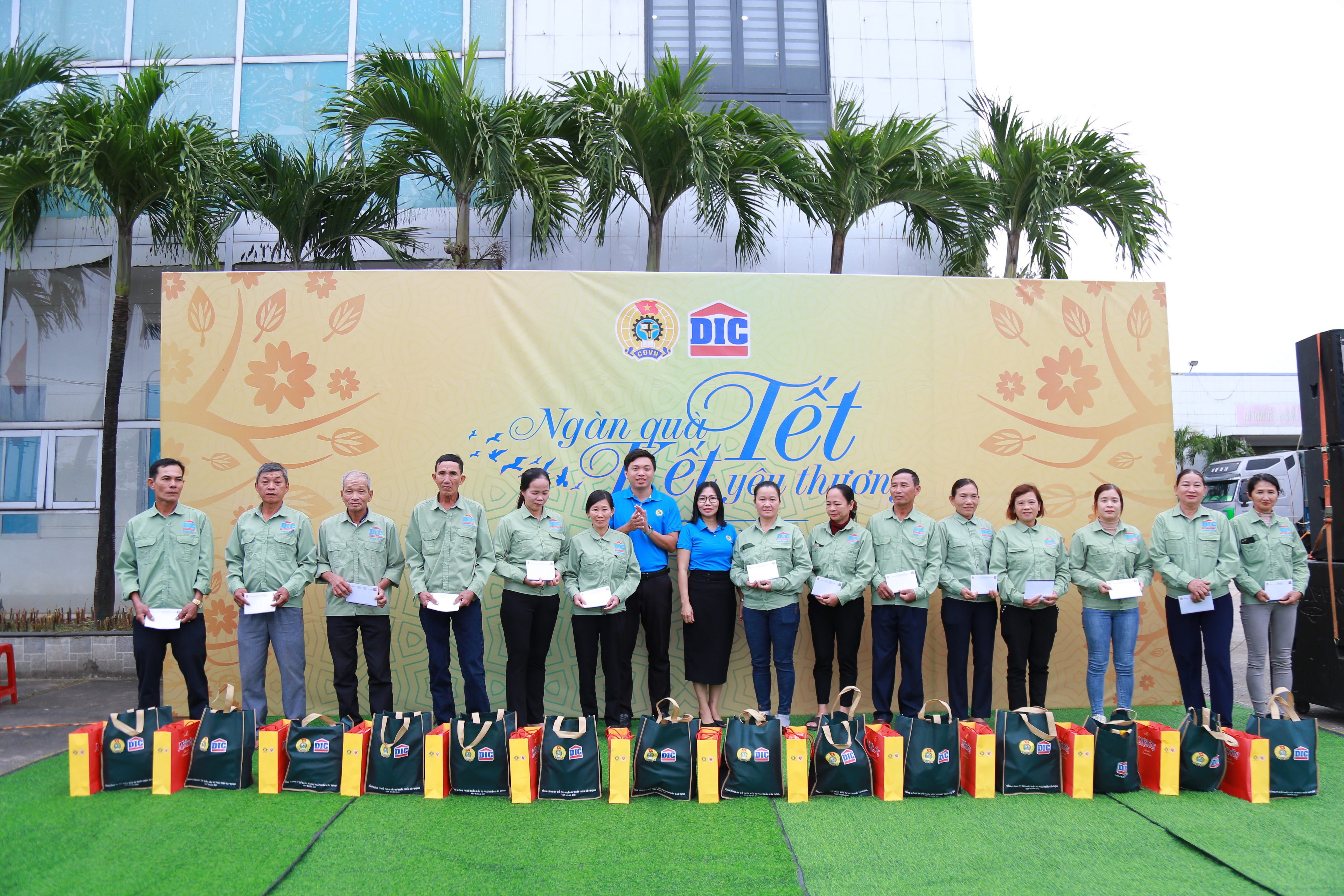 Sáng ngày 14/01/2025, Công đoàn Tập đoàn DIC tổ chức trao tặng quà cho 78 đoàn viên có hoàn cảnh khó khăn tại Công đoàn cơ sở DIC Anh Em (Trụ sở tại Khu công nghiệp bắc Chu Lai, Xã Tam Hiệp, Huyện Núi Thành, Tỉnh Quảng Nam), phần quà gồm nhu yếu phẩm trị giá 300.000 đồng và tiền mặt từ 500.000 đồng đến 5.000.000 đồng. Tổng giá trị 90.000.000 đồng.