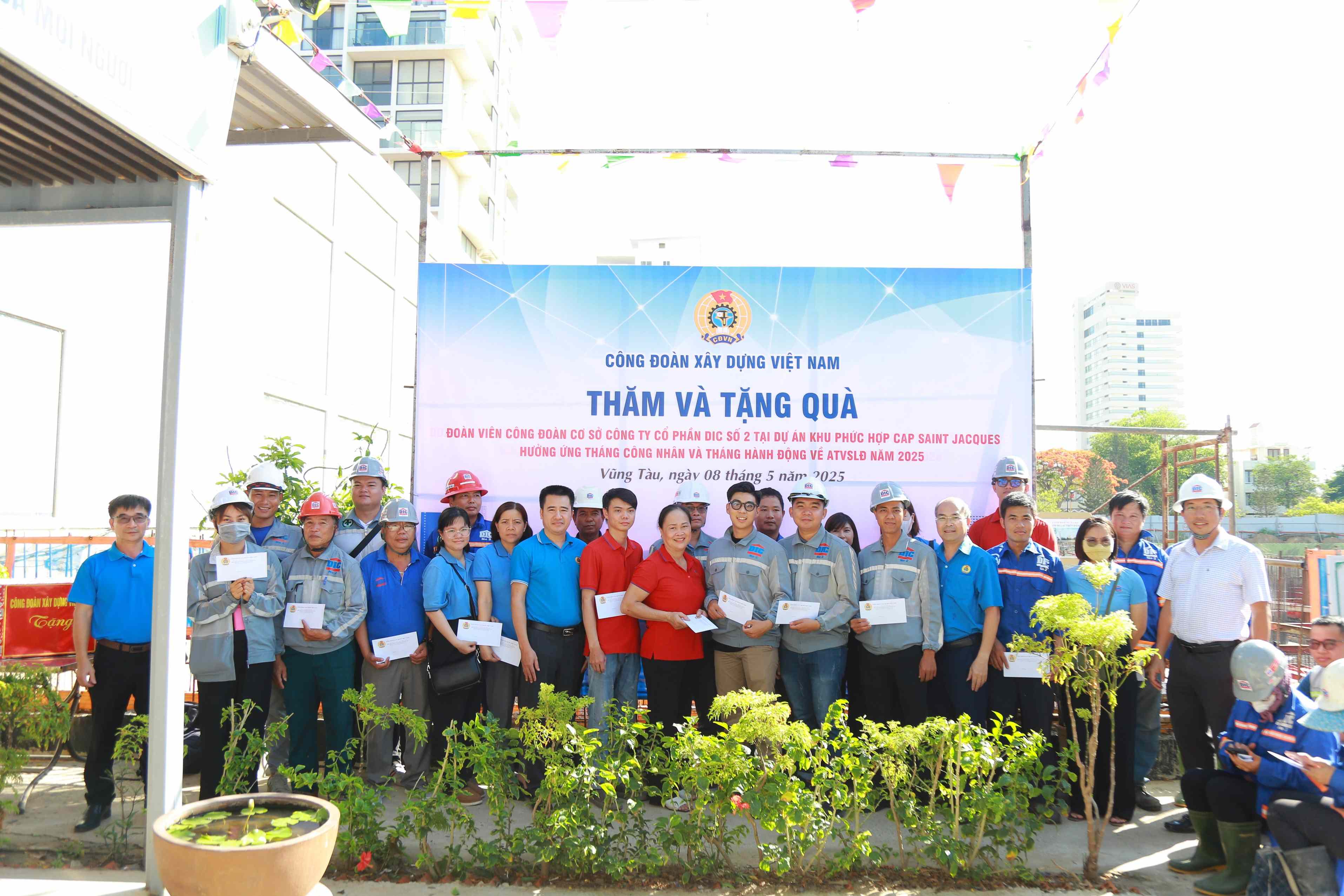 Sáng 8/5/2025, Đoàn công tác của Công đoàn Xây dựng Việt Nam đã đến thăm và trao quà cho đoàn viên, người lao động Công đoàn cơ sở DIC số 2 tại Dự án Khu phức hợp Cap Saint Jacques.