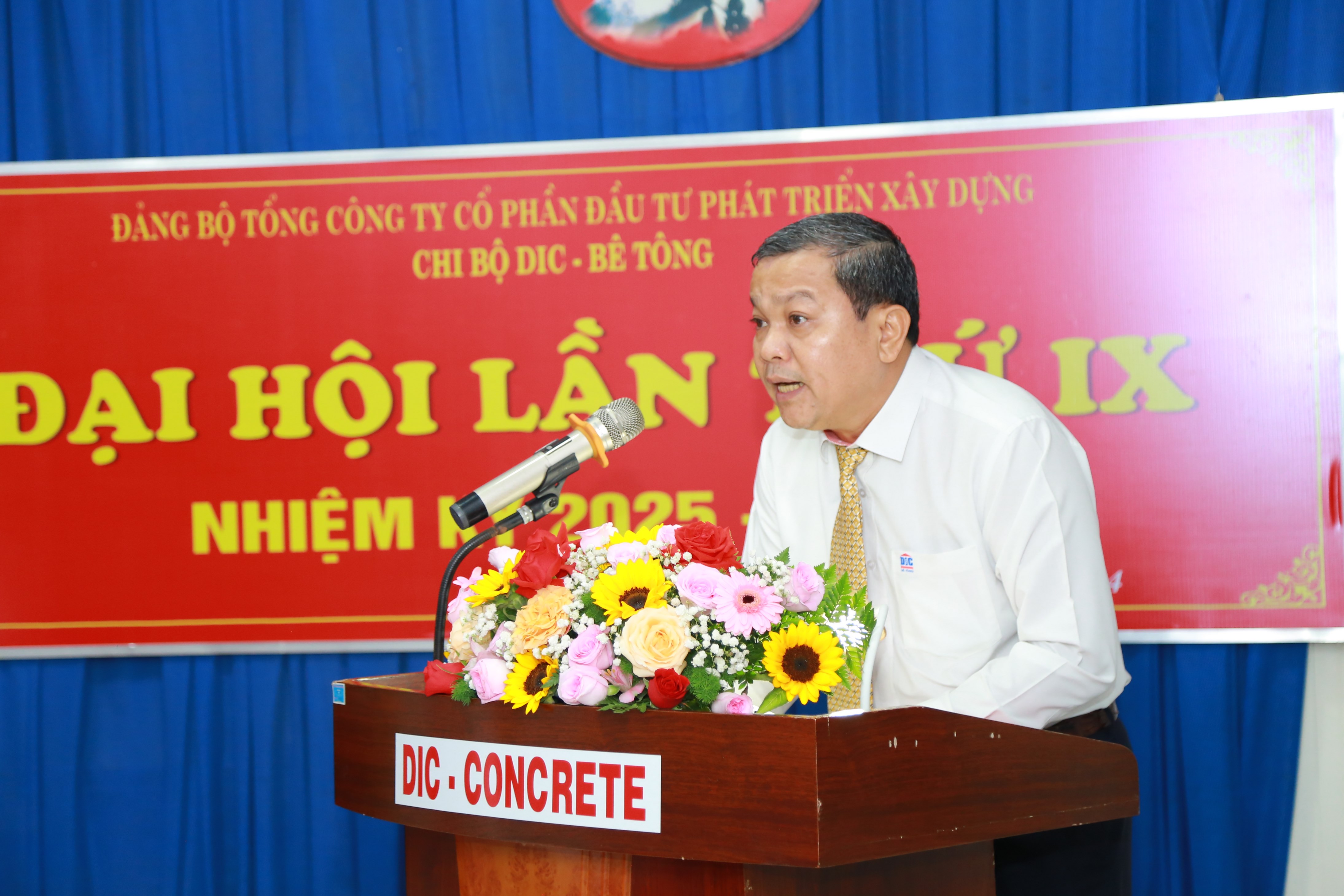 Trong không khí vui tươi, phấn khởi, tinh thần thi đua lập thành tích chào mừng Đại hội Đảng các cấp, tiến tới Đại hội đại biểu Đảng bộ Tập đoàn DIC nhiệm kỳ 2025 – 2030, Chi bộ DIC Bê tông đã tổ chức đại hội đảng viên theo đúng quy định. Đến dự và chỉ đạo Đại hội có đồng chí Nguyễn Thị Kim Nhung – Phó Bí thư Đảng ủy Tập đoàn DIC.