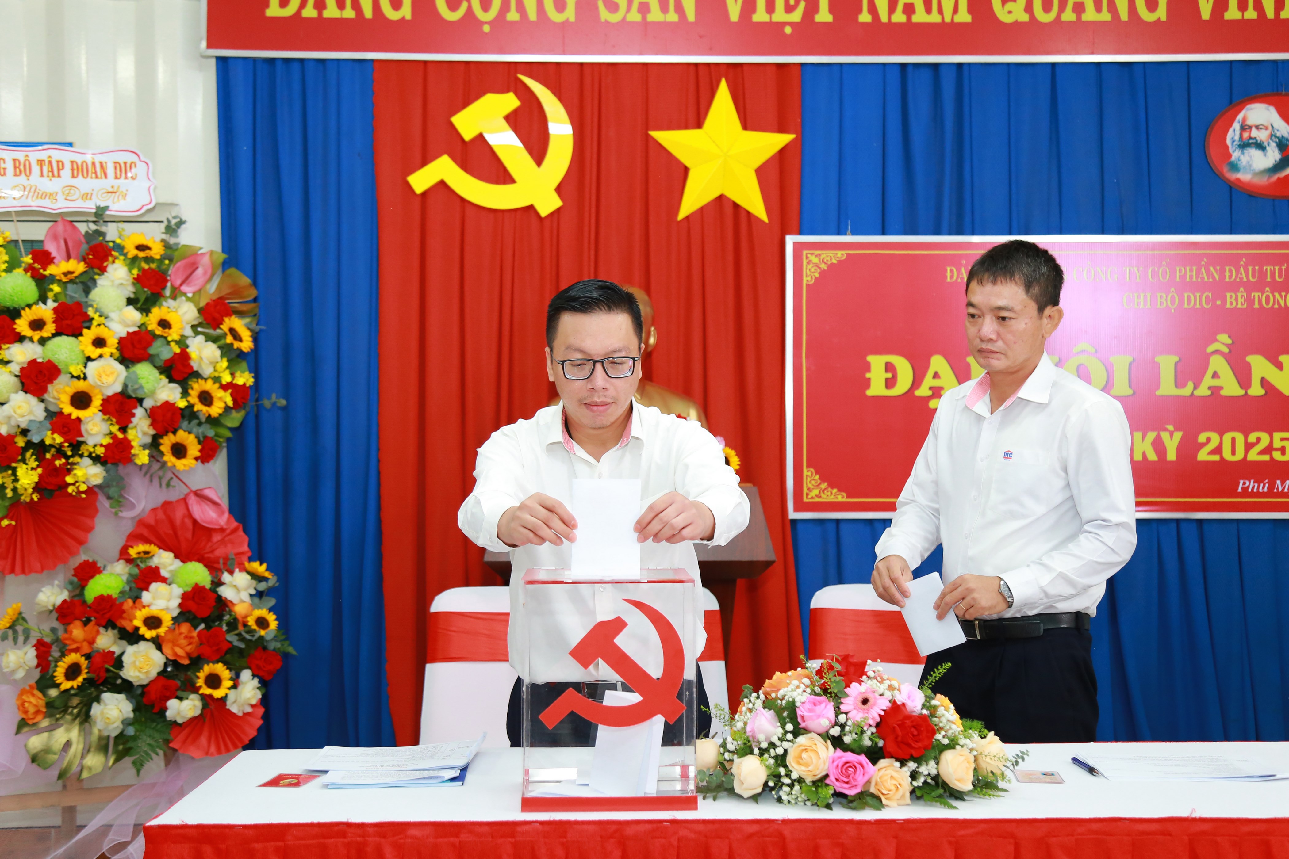 Thực hiện nội dung đại hội chi bộ theo quy định của Đảng, hướng dẫn của Đảng ủy Tập đoàn DIC, Đại hội đã tiến hành bầu Chi ủy, Bí thư, Phó Bí thư Chi bộ nhiệm kỳ 2025 – 2027. Đồng chí Trần Giám Hiệu đã được Đại hội bầu giữ chức vụ Bí thư Chi bộ; đồng chí Dương Vĩnh Hiệp được bầu giữ chức vụ Phó Bí thư Chi bộ và bầu 03 đồng chí giữ chức vụ Chi ủy viên.