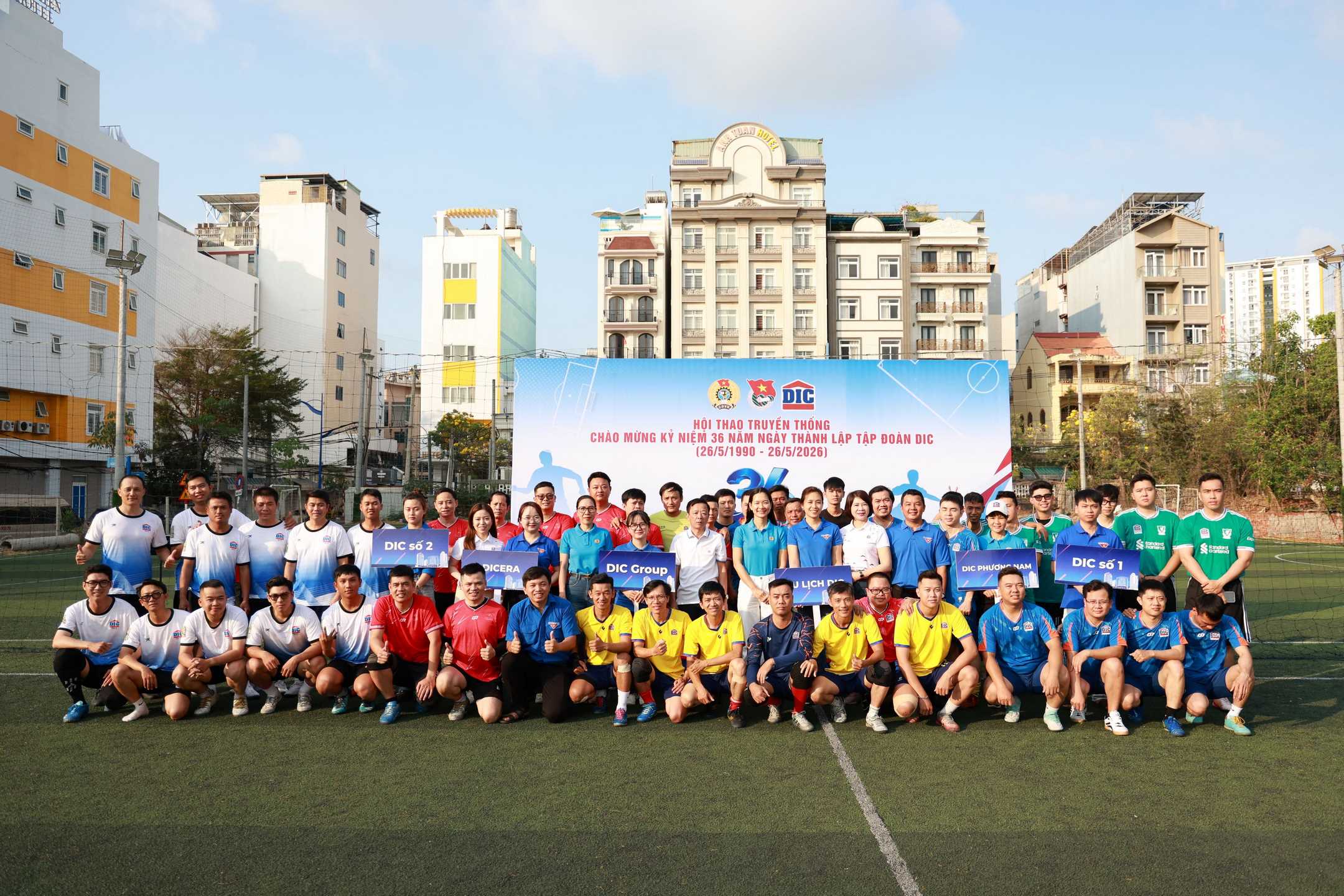 Thiết thực chào mừng kỷ niệm 36 năm Ngày thành lập Tập đoàn DIC (26/5/1990 – 26/5/2026) và hưởng ứng phát động phòng trào thi đua Công đoàn đồng hành vì sức khỏe người lao động. Sáng ngày 11/04/2026, tại sân bóng đá Khách sạn Cao Su – phường Vũng Tàu, Công đoàn và Đoàn Thanh niên Tập đoàn DIC đã phối hợp với Tập đoàn DIC tổ chức Lễ khai mạc Giải bóng đá Hội thao truyền thống năm 2026.