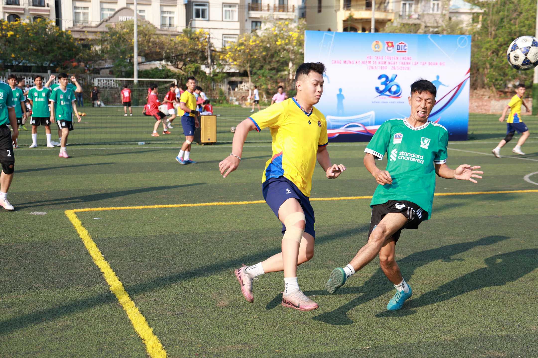 Ngay sau lễ khai mạc, các trận đấu vòng bảng đã diễn ra trong hai ngày 11 và 12/4 đầy sôi động, thể hiện tinh thần thi đấu nhiệt huyết – trung thực – cao thượng, tạo nên những trận đấu hấp dẫn và giàu cảm xúc. Sau 6 lượt trận vòng bảng đã tìm ra 4 đơn vị tiếp tục bước vào vòng Bán Kết: Tập đoàn DIC + Thiên Tân; DIC số 2; DICERA và DIC Phương Nam. Các đội sẽ có thời gian nghỉ ngơi, chuẩn bị cho vòng Bán kết diễn ra từ ngày 18/4, tiếp nối là trận Chung kết và tranh hạng Ba – Tư vào ngày 19/4/2026. Những trận đấu sắp tới được kỳ vọng sẽ mang đến các màn tranh tài hấp dẫn, kịch tính, góp phần tạo nên dấu ấn nổi bật cho mùa giải trong chuỗi hoạt động kỷ niệm 36 năm thành lập Tập đoàn DIC.