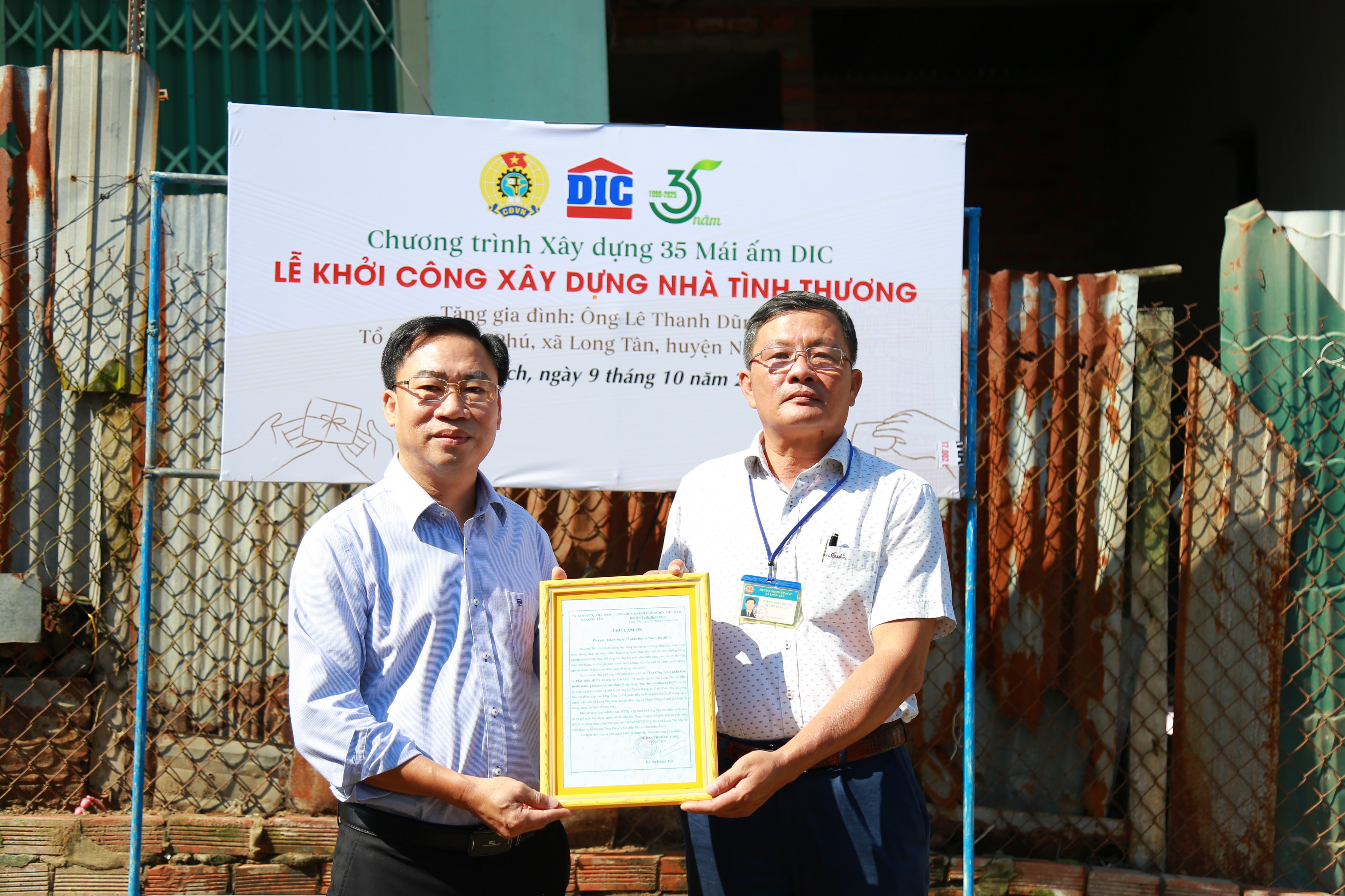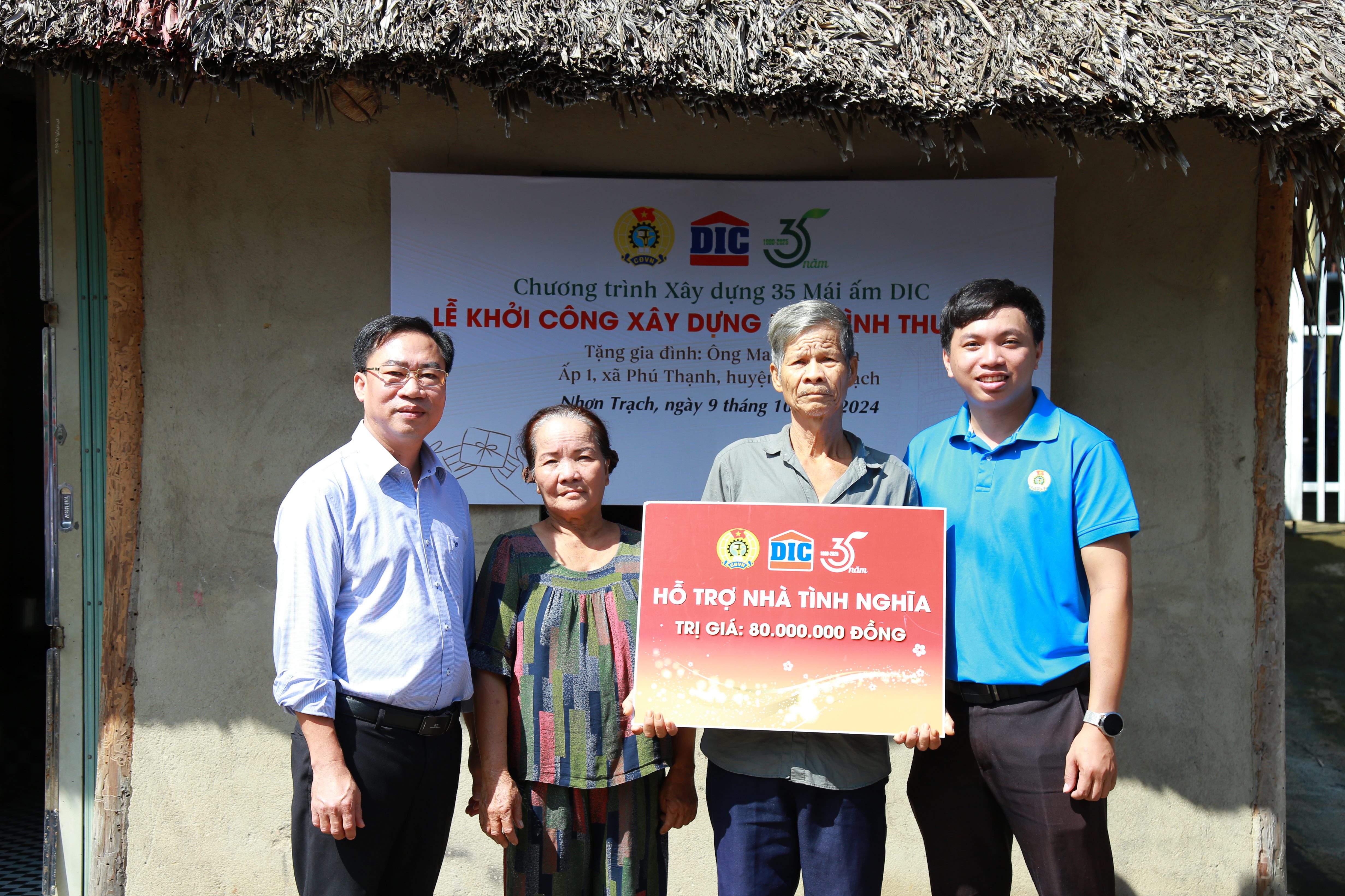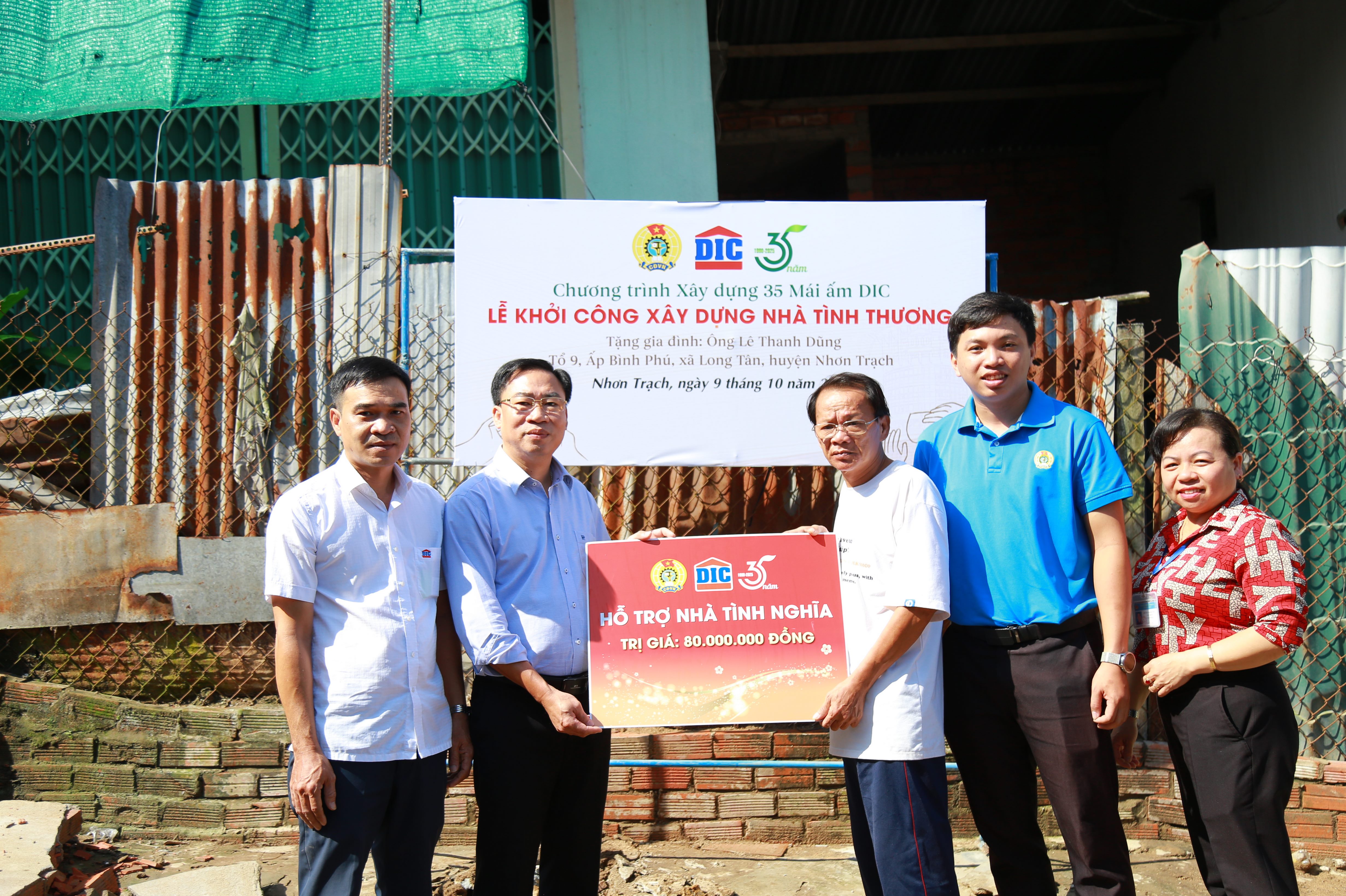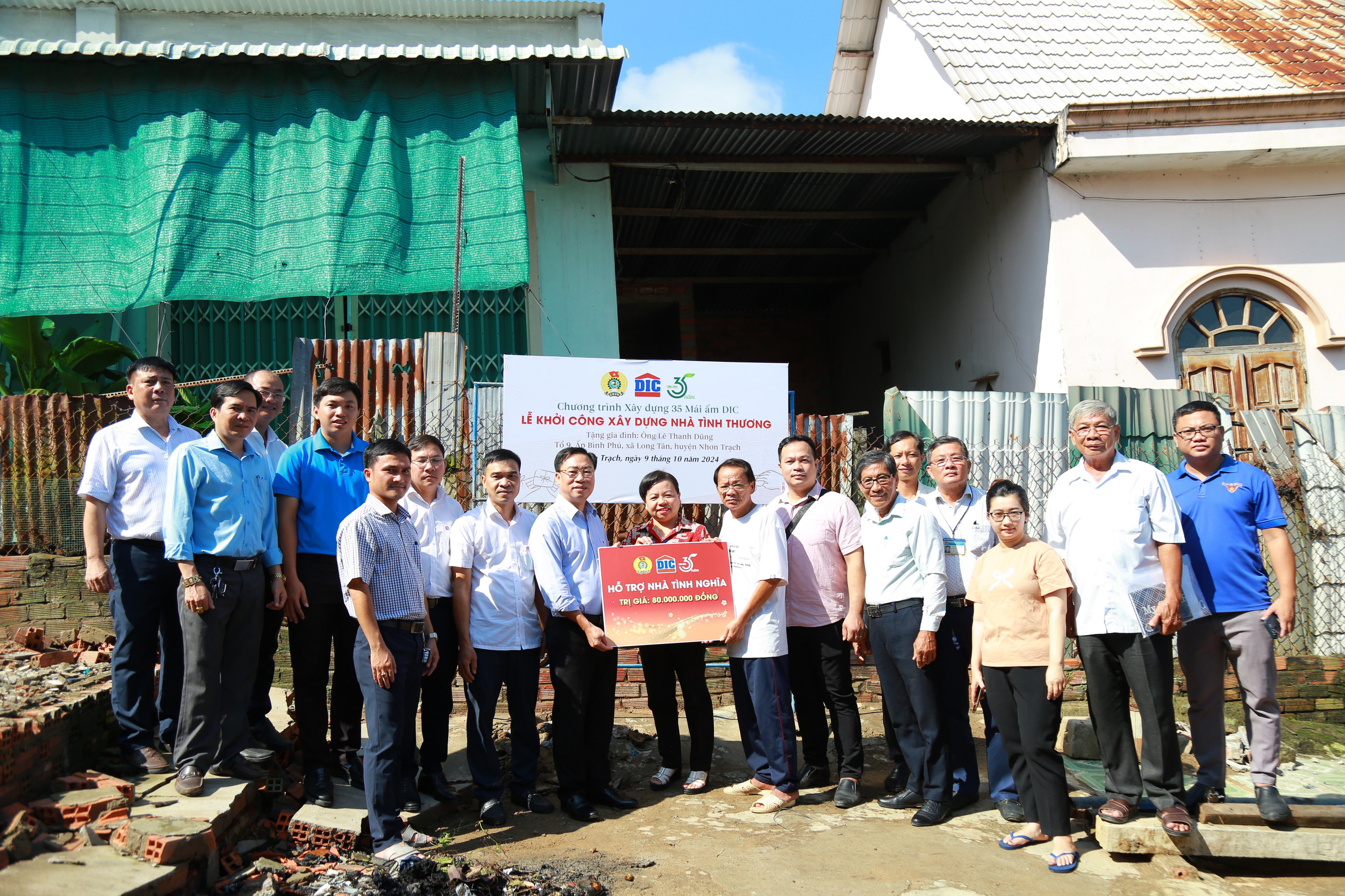 Ngày 09/10/2024, Tập đoàn DIC phối hợp với chính quyền địa phương tại xã Long Tân và xã Phú Thạnh (huyện Nhơn Trạch, tỉnh Đồng Nai) tổ chức khởi công xây dựng nhà tình thương cho gia đình ông Lê Thanh Dũng (xã Long Tân) và gia đình ông Mai Ngọc Của (xã Phú Thạnh). Đây là hai hộ gia đình có hoàn cảnh đặc biệt khó khăn, sống trong các căn nhà tạm đã xuống cấp trầm trọng.