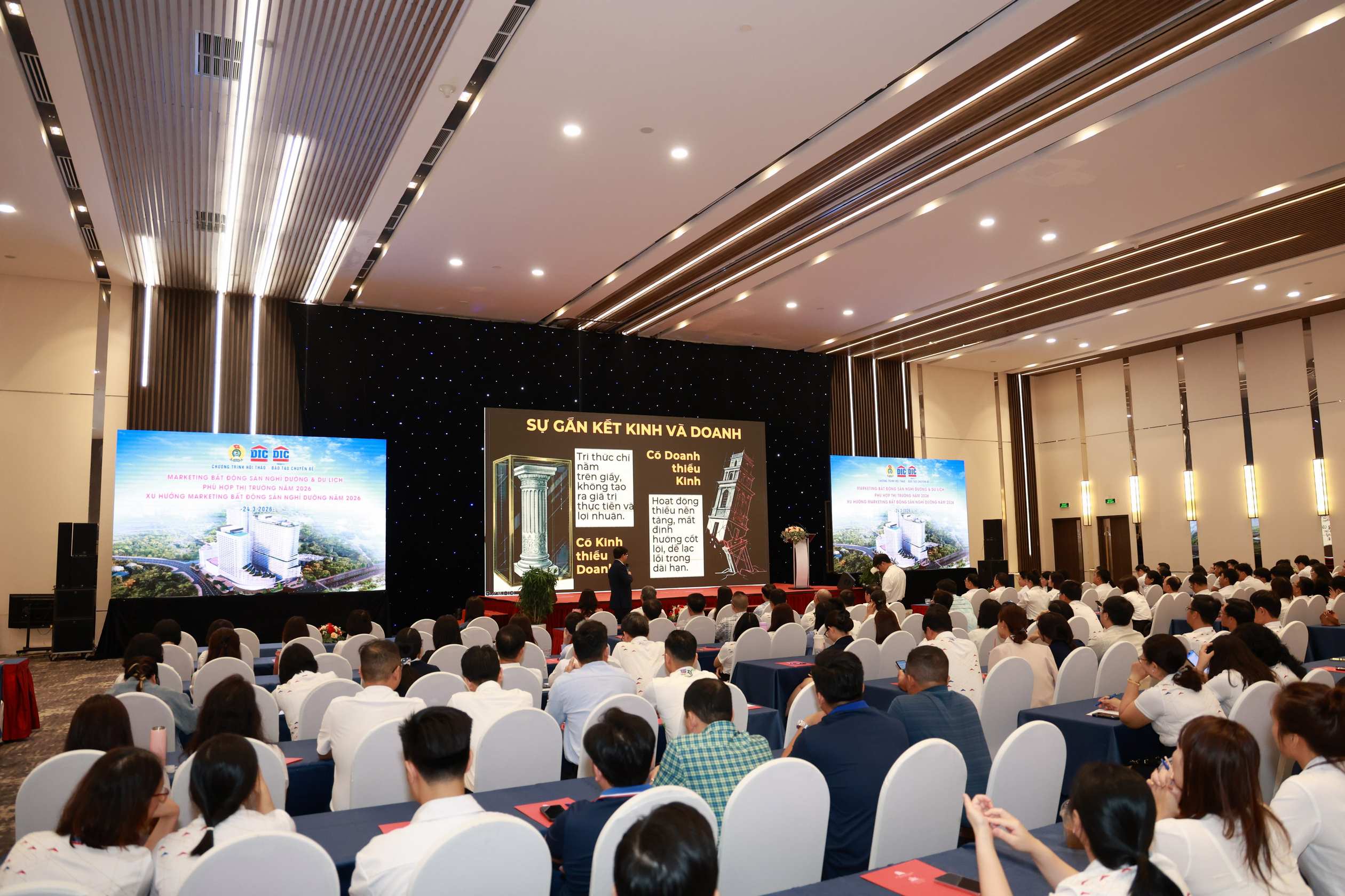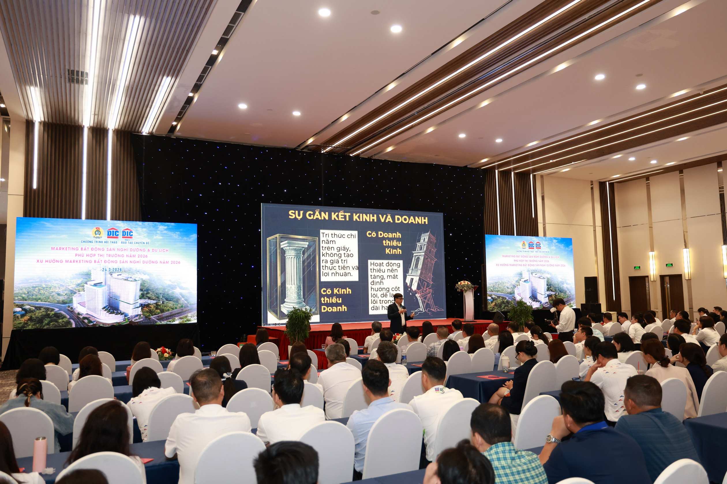 Sáng ngày 24/3/2026, tại Trung tâm Hội nghị Aurora (TP. Hồ Chí Minh), Công đoàn đã phối hợp cùng Tập đoàn DIC và DIC Resco tổ chức Chương trình Hội thảo – Đào tạo chuyên đề Marketing bất động sản nghỉ dưỡng & du lịch phù hợp thị trường năm 2026 "Xu hướng marketing bất động sản nghỉ dưỡng năm 2026". Chương trình thu hút gần 300 đoàn viên, CBNV-NLĐ trong toàn Tập đoàn DIC tham dự.