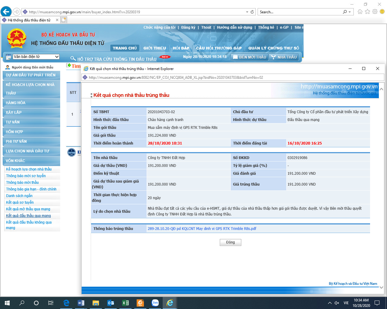 Các nhà thầu có thể vào website chính thức của Hệ thống đấu thầu điện tử của Bộ Kế Hoạch và Đầu Tư để xem.