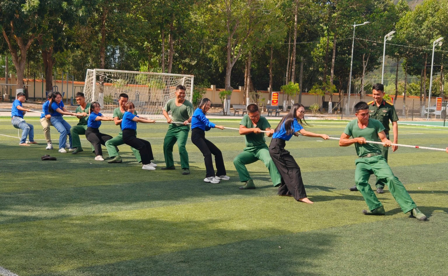 Không chỉ dừng lại ở hoạt động trao tặng, chương trình còn để lại nhiều dấu ấn tốt đẹp thông qua các hoạt động gắn kết quân – dân. Đoàn viên thanh niên Tập đoàn DIC đã cùng cán bộ, chiến sĩ Trung đoàn, nhân dân địa phương, hội viên phụ nữ cùng nhau gói bánh chưng, bánh tét. Các hoạt động thể dục thể thao, giao lưu văn nghệ diễn ra sôi nổi, tạo nên bầu không khí vui tươi, phấn khởi. Đặc biệt, bữa cơm “Tết đoàn viên” giữa cán bộ, chiến sĩ và gia đình quân nhân để lại nhiều cảm xúc sâu lắng. Trong không gian ấm cúng, mọi người cùng sẻ chia câu chuyện công tác, gia đình, gửi gắm niềm tin và quyết tâm cho một năm mới thắng lợi.