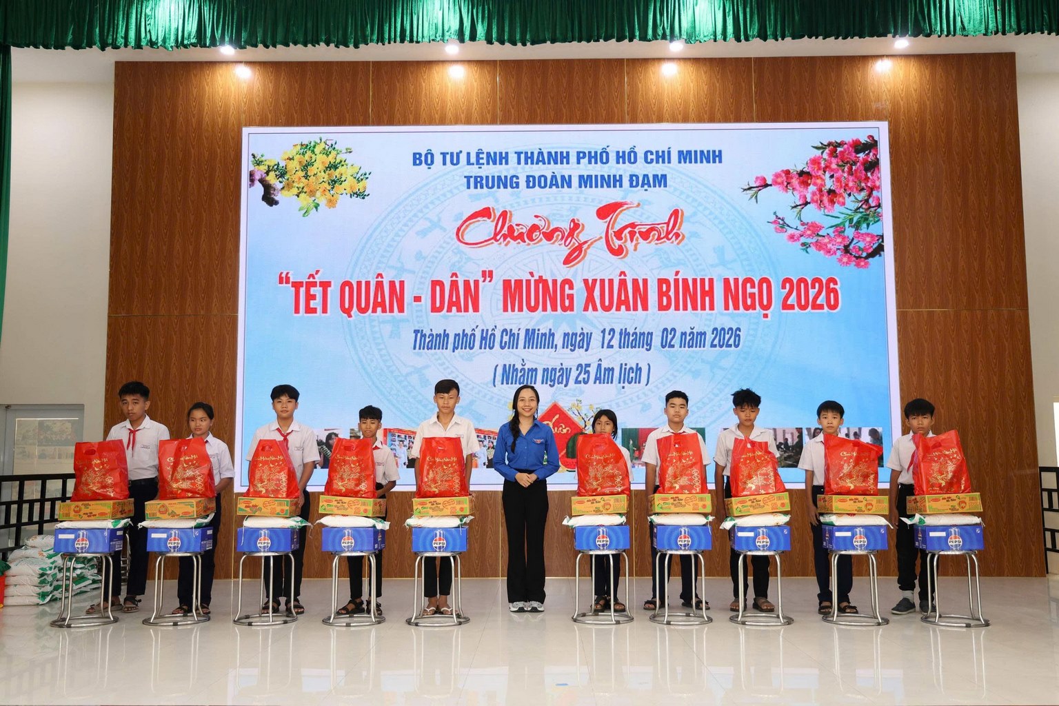 Ngày 12/02/2026, Chương trình tiếp tục được tổ chức tại Ban Chỉ huy Quân sự phường Tân Phước, 50 suất quà tiếp tục được trao tận tay các gia đình có hoàn cảnh khó khăn. Cùng ngày, tại Trung đoàn Minh Đạm, 100 suất quà đến các gia đình chính sách, hộ dân và học sinh có hoàn cảnh khó khăn tại các địa phương Long Hải, Long Điền, Phước Hải và Trường THCS Hùng Vương. Mỗi phần quà là một sự sẻ chia thiết thực, góp phần mang đến mùa xuân đủ đầy và nghĩa tình cho bà con.