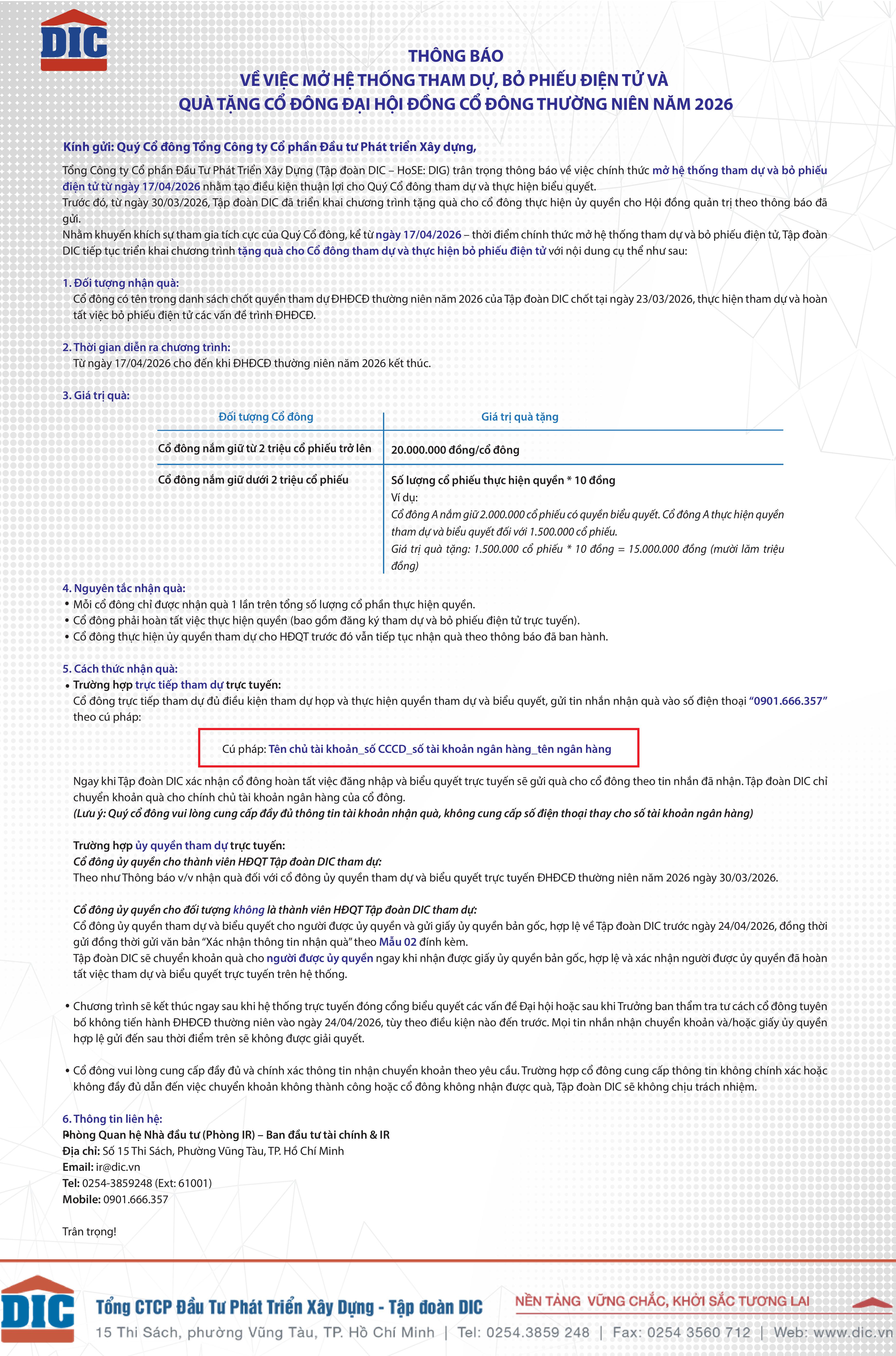 Mở hệ thống tham dự, bỏ phiếu điện tử và quà tặng cổ đông ĐHĐCĐ thường niên năm 2026