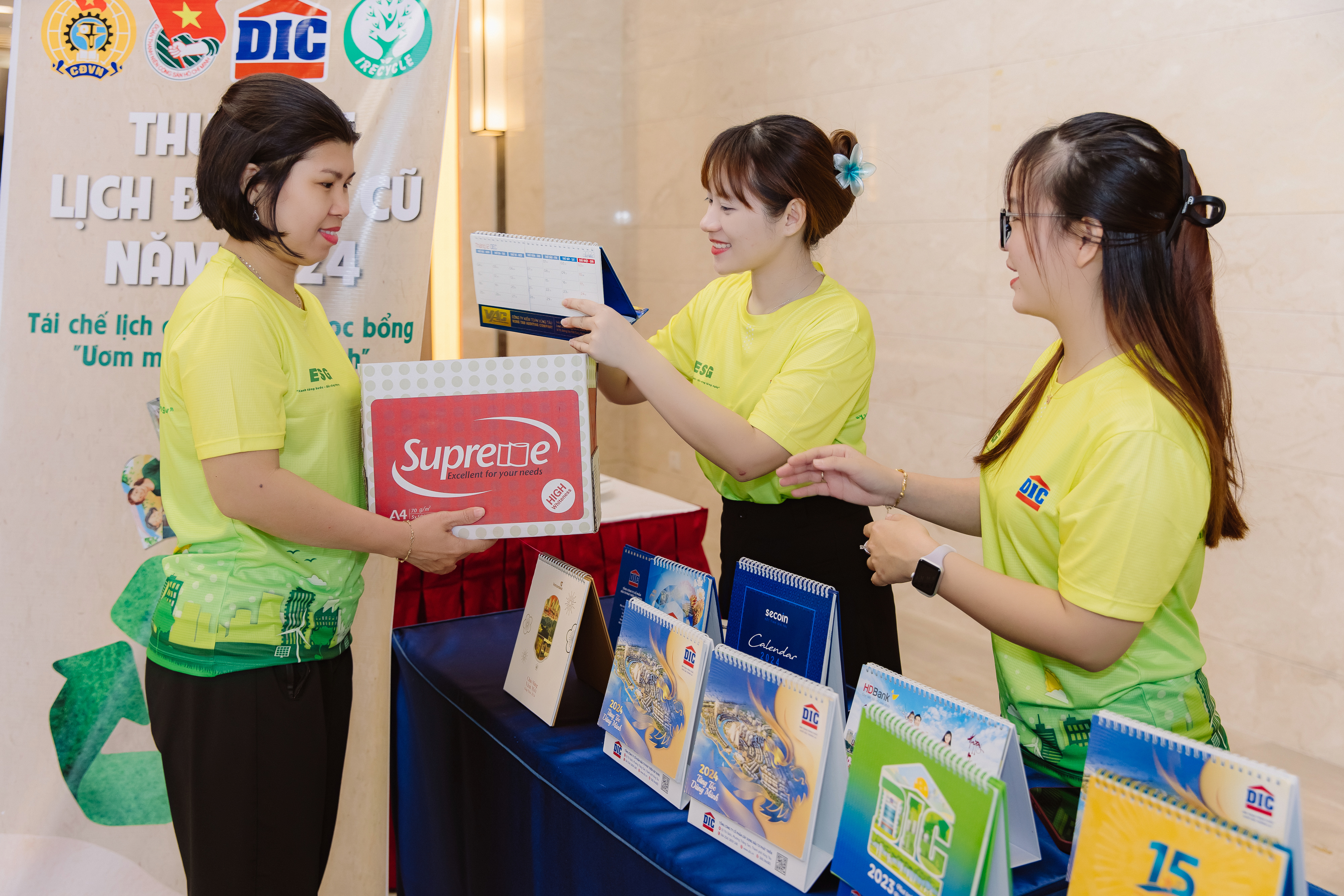 Trong khuôn khổ Workshop, chương trình “Thu gom lịch bàn cũ năm 2024” do Công đoàn và Đoàn Thanh niên Tập đoàn DIC phát động đã nhận được sự hưởng ứng nhiệt tình. Các cuốn lịch cũ sẽ được tái chế bởi dự án phi lợi nhuận Irecycle, tạo thành các sản phẩm có giá trị như bao lì xì, tranh giấy hoặc gây quỹ học bổng “Ươm mầm Tài năng Xanh”. Đây là hành động nhỏ nhưng mang ý nghĩa lớn, khẳng định tinh thần trách nhiệm của Tập đoàn DIC trong việc bảo vệ môi trường, đúng với thông điệp “Xanh từng bước – Bền vững từng ngày”.