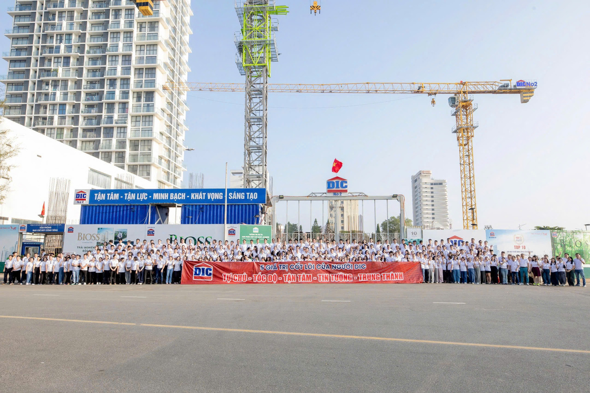 Ảnh 1: Tập thể CBNV Tập đoàn DIC chụp hình tại dự án Khu phức hợp Cap Saint Jacques.