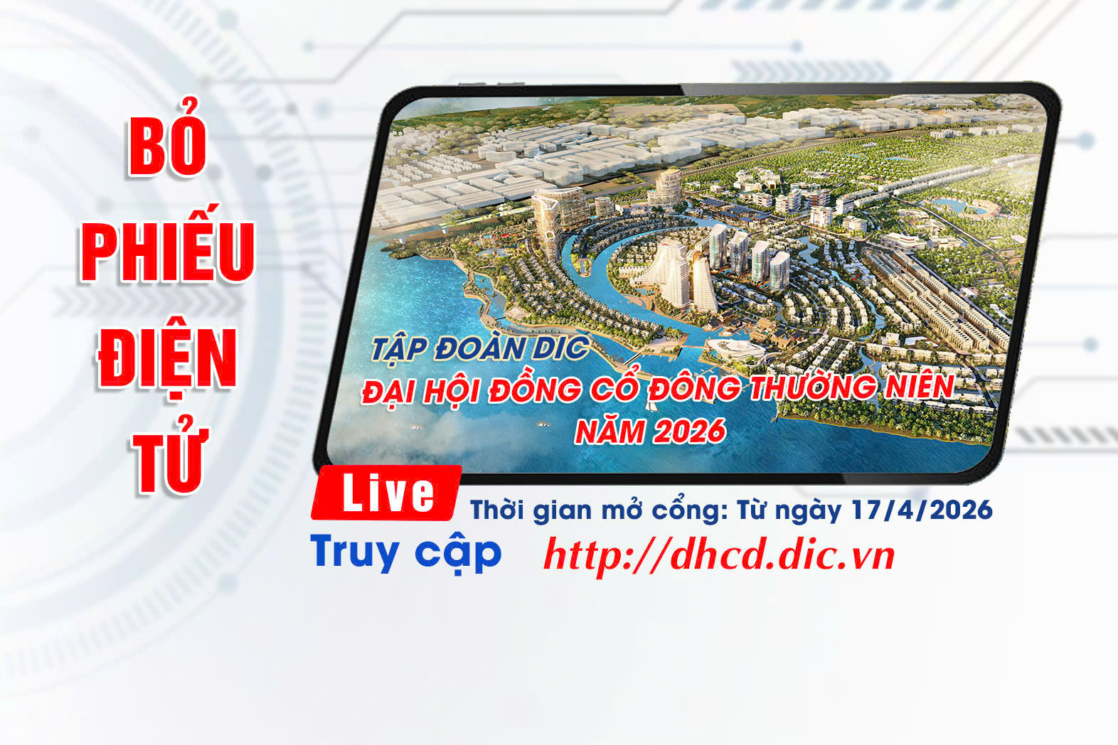 Từ ngày 17/4/2026, Tập đoàn DIC (HoSE: DIG) chính thức mở hệ thống tham dự và bỏ phiếu điện tử Đại hội đồng cổ đông (ĐHĐCĐ) thường niên năm 2026 tại địa chỉ http://dhcd.dic.vn. Điểm nhấn đáng chú ý trong kỳ Đại hội năm nay là chương trình tri ân thiết thực dành cho các cổ đông hoàn tất thủ tục bỏ phiếu điện tử hoặc ủy quyền tham dự cho HĐQT.