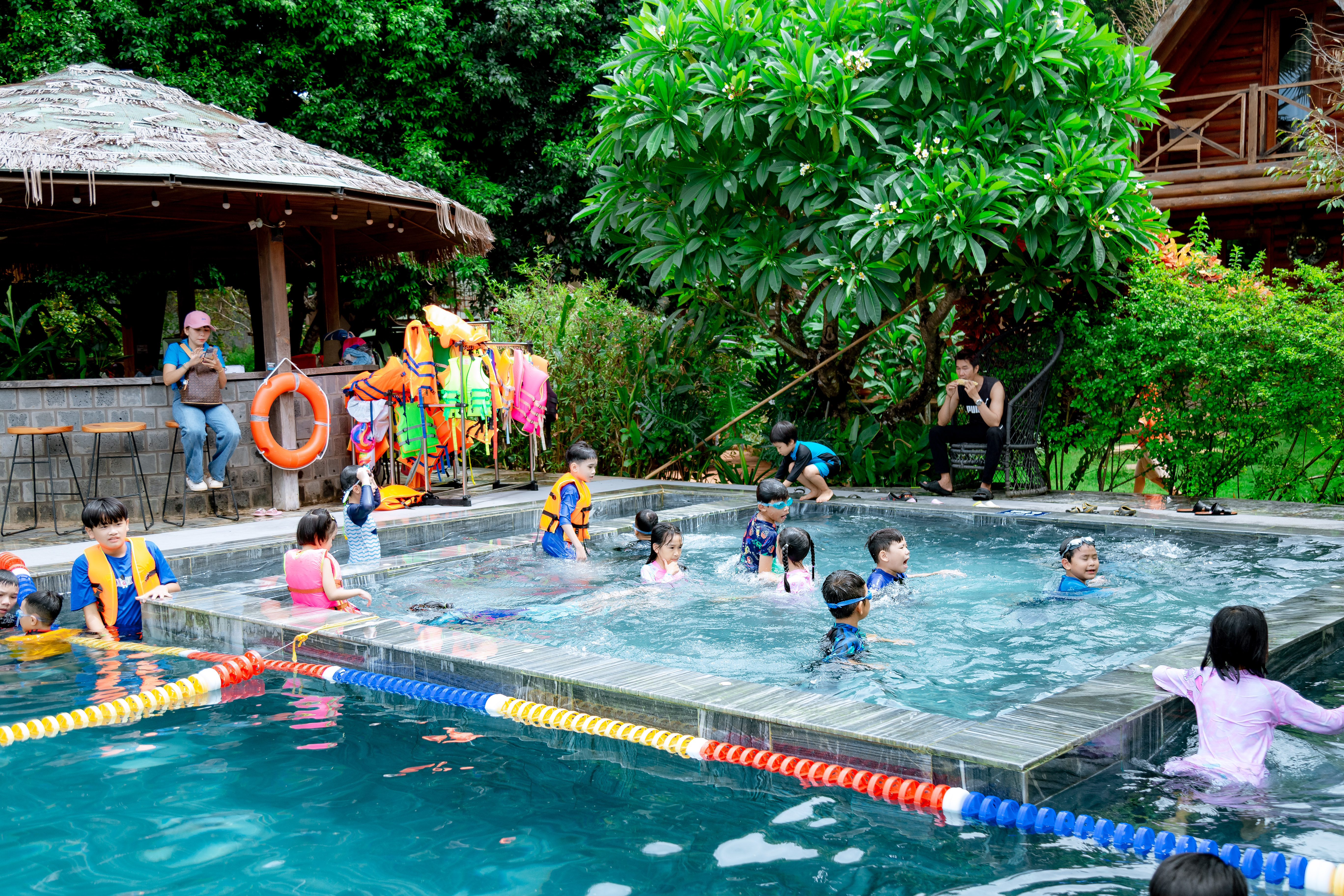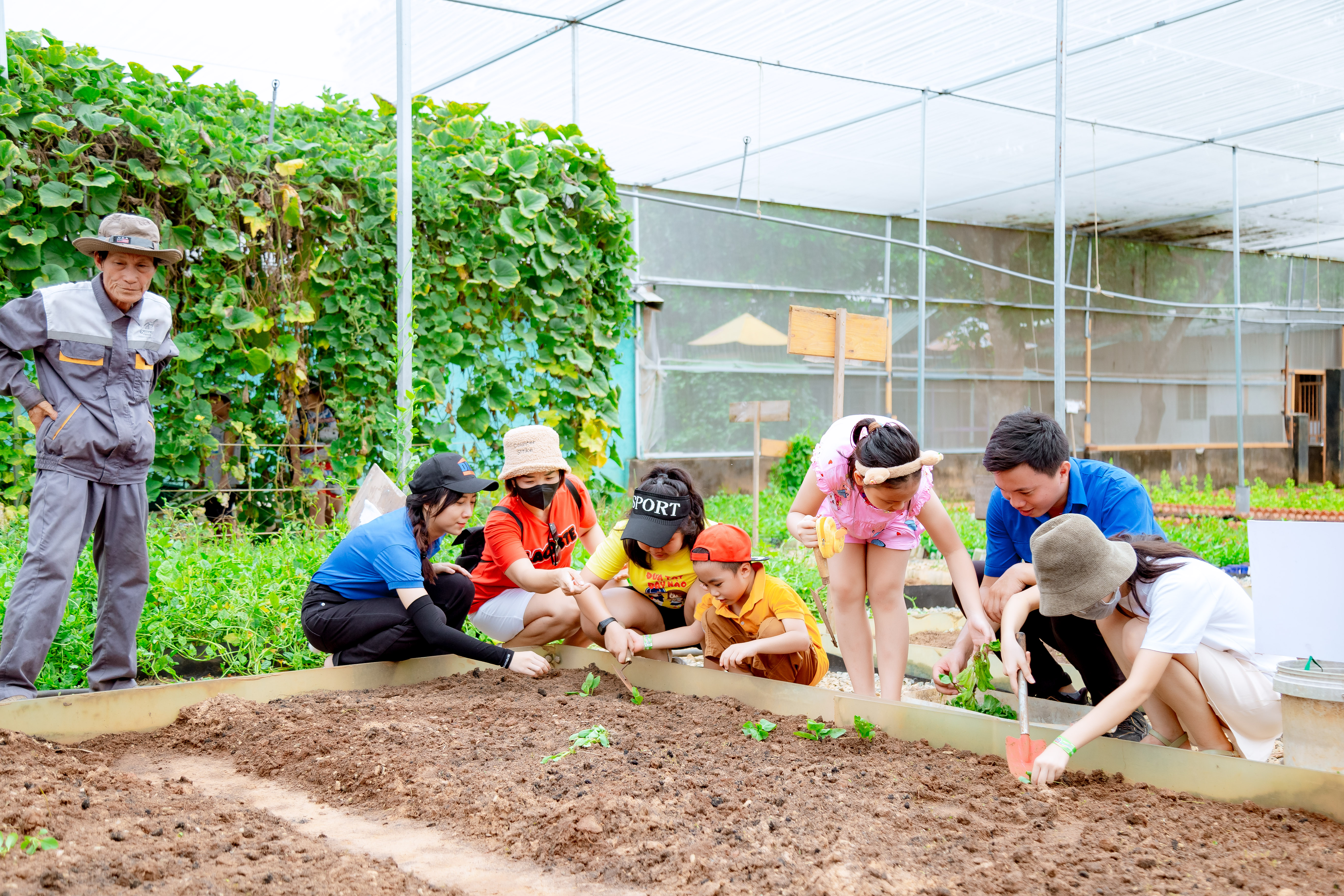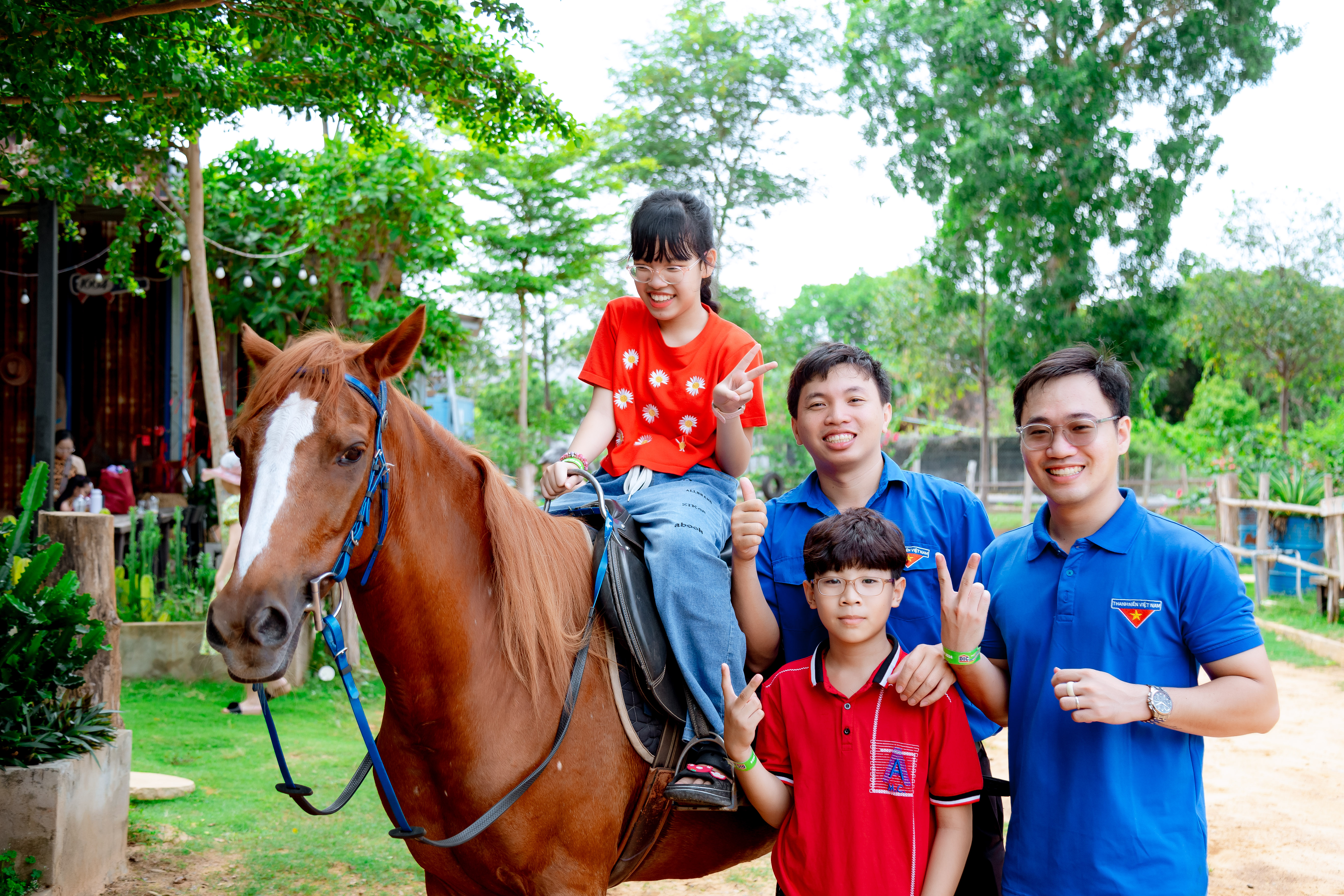 At Greenfield Farmstay, the children were excited to participate in many interesting games such as: horseback riding, swimming together, farming experience, harvesting clean vegetables, visiting and making hot noodles by themselves...