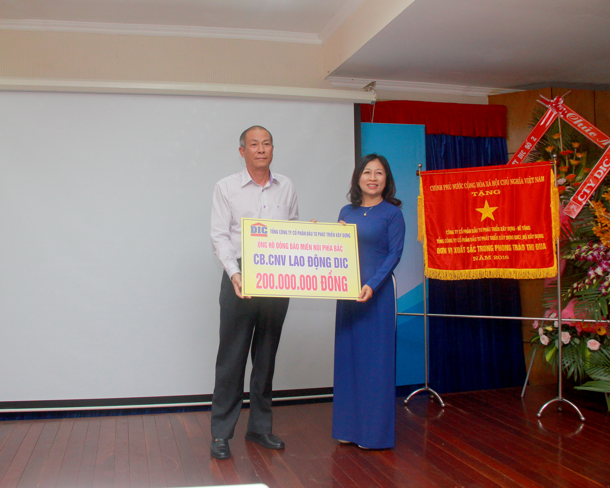 On the afternoon of 11th August, at the “Preliminary conference summing up business performance in the first 6 months of 2017” of the DIC Group, Mrs. Phan Thi Mai Huong , Chairman of Trade Union, officially launched funding campaign to support Northern mountainous people recovering from severe impact of natural disasters.