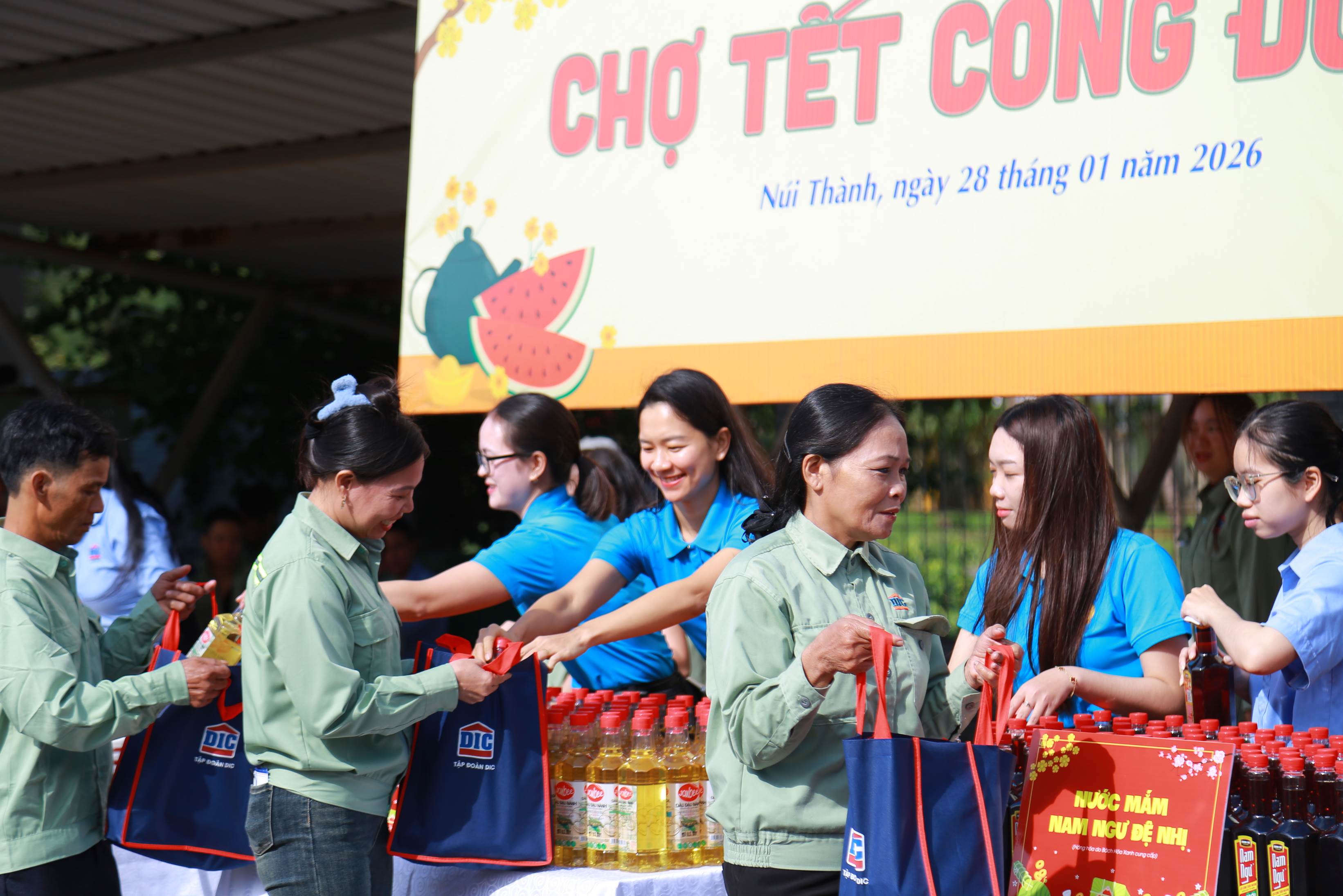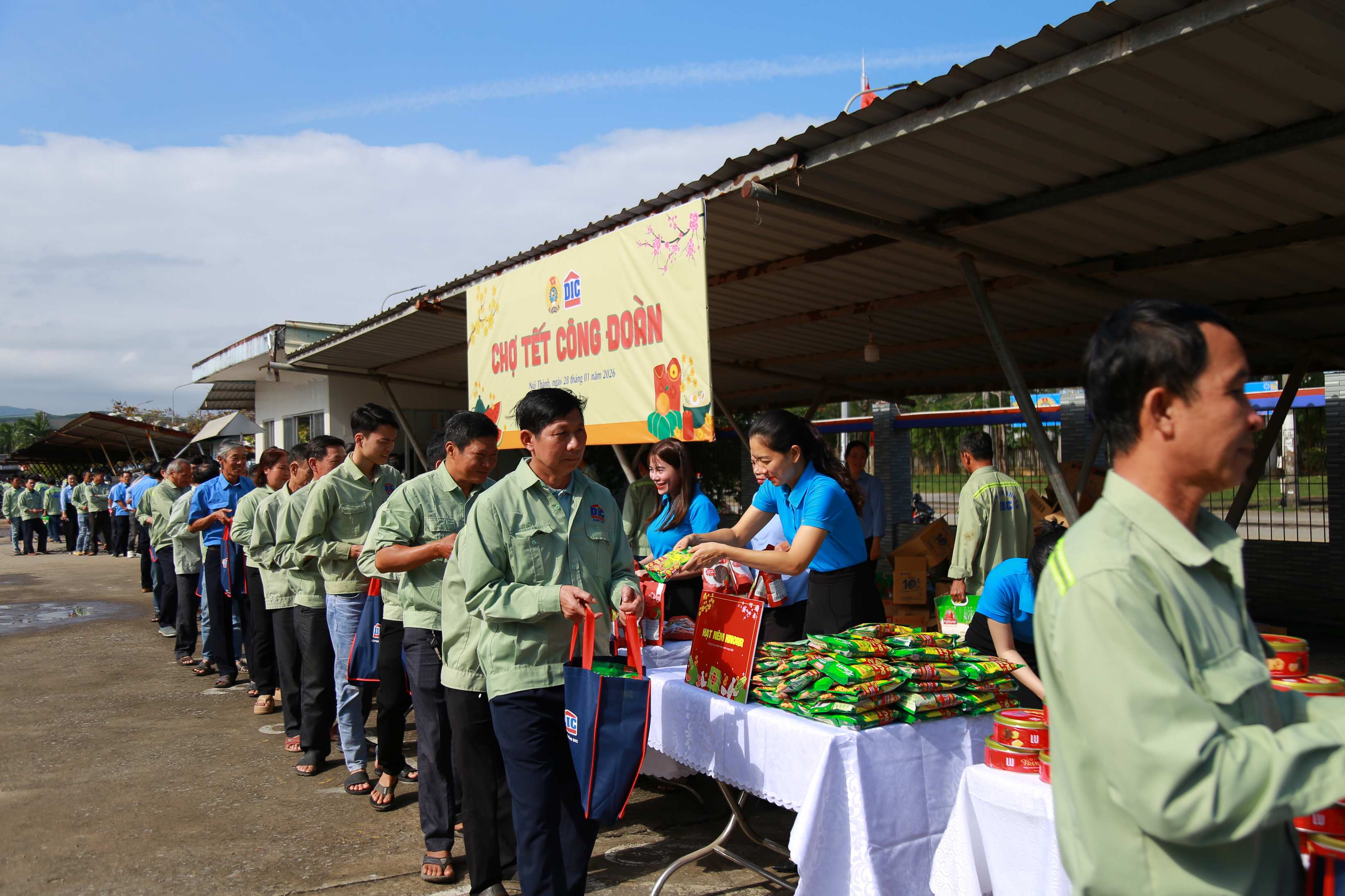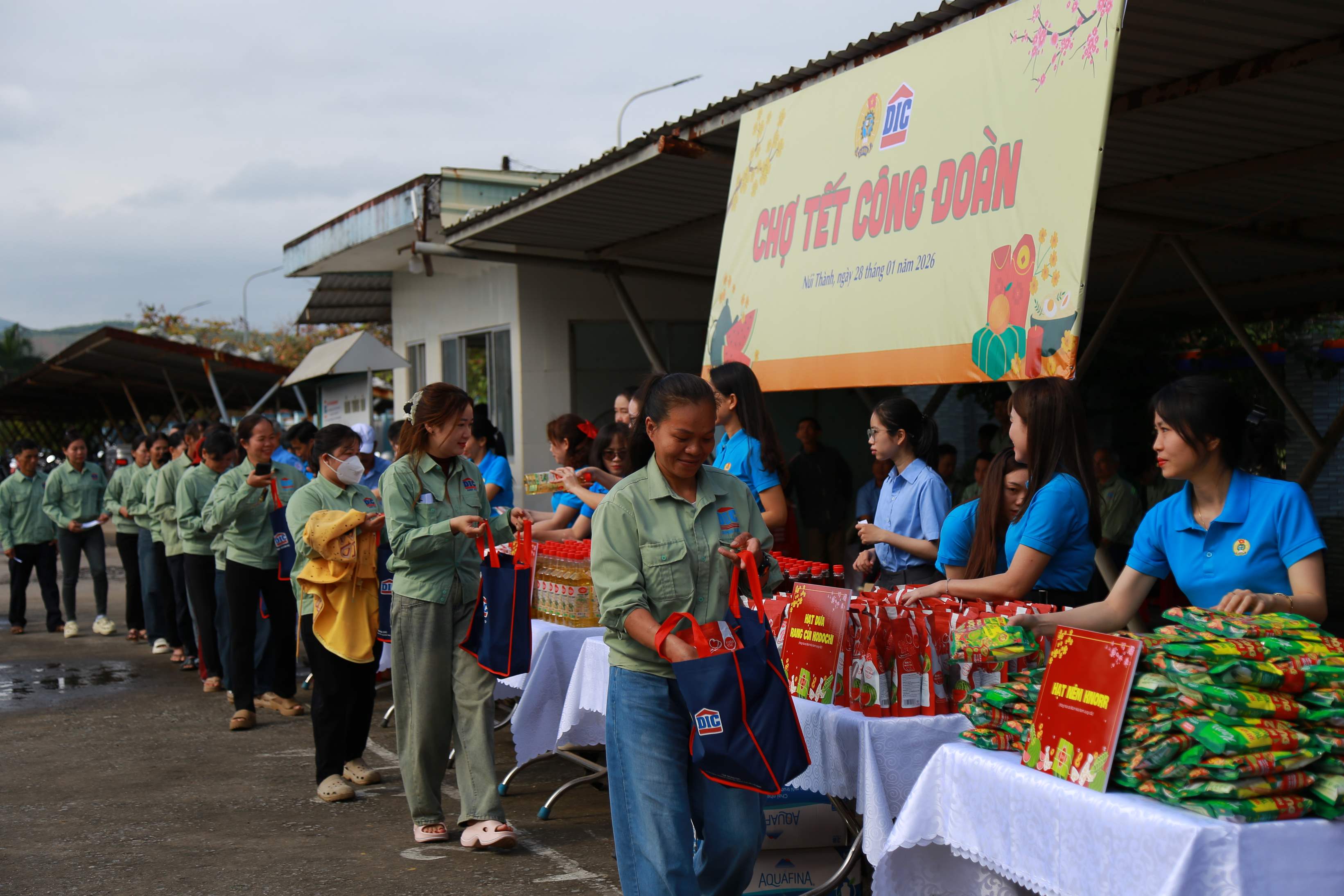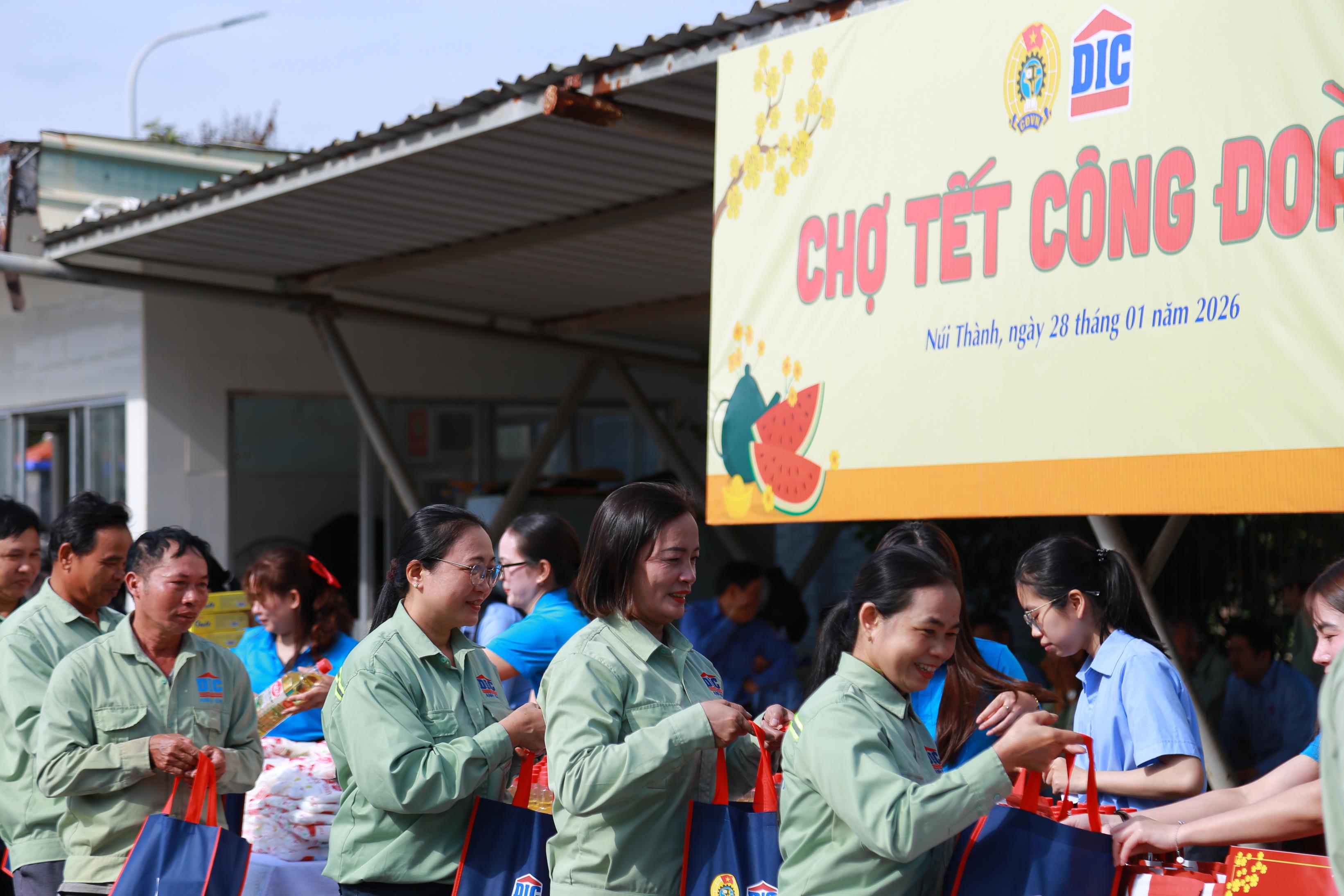 Cũng trong ngày, chương trình “Chợ Tết Công đoàn” tiếp tục mang đến không khí rộn ràng và nghĩa tình. Đây là năm thứ ba liên tiếp hoạt động được tổ chức tại DIC Anh Em, trở thành điểm hẹn quen thuộc mỗi dịp Tết đến xuân về.