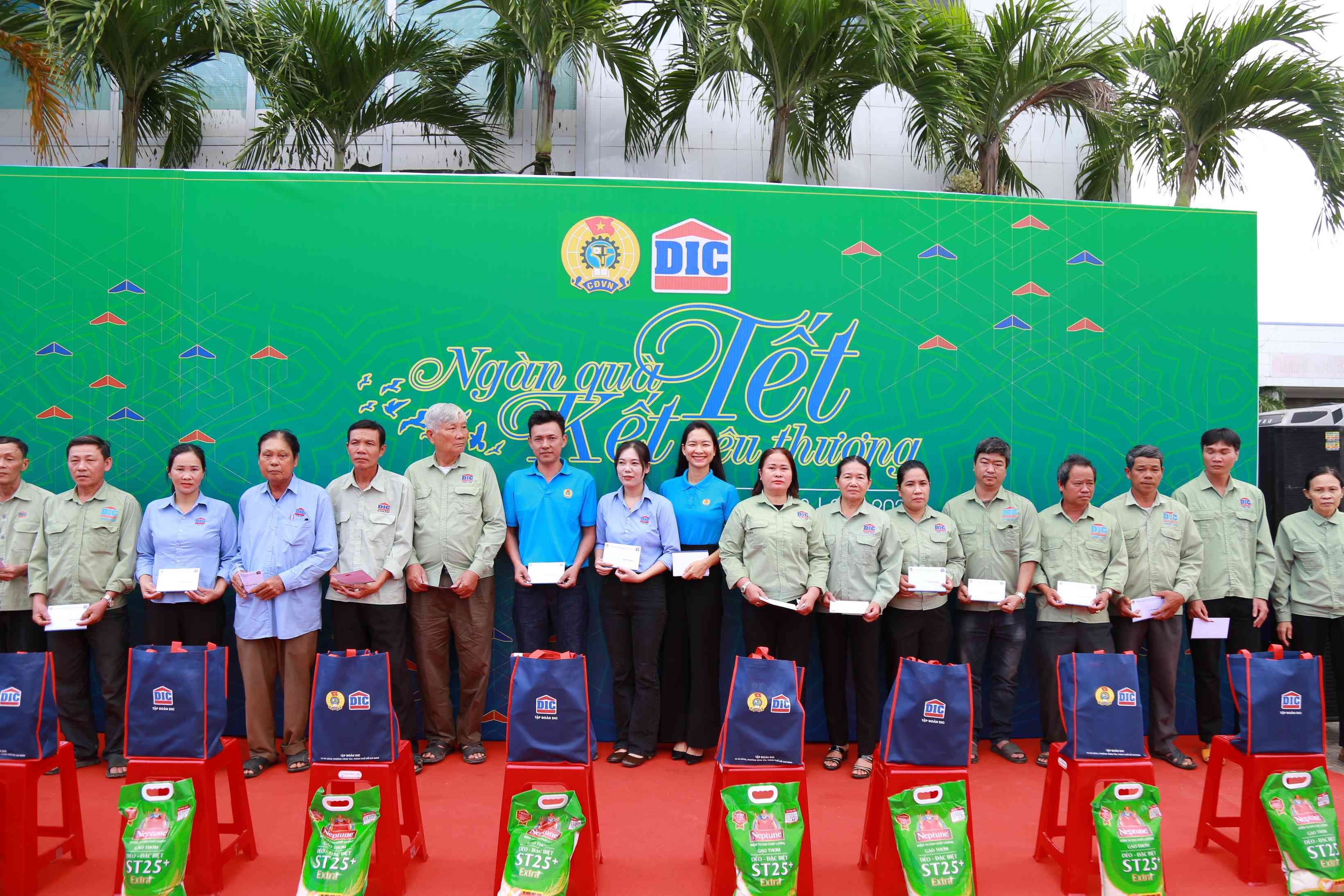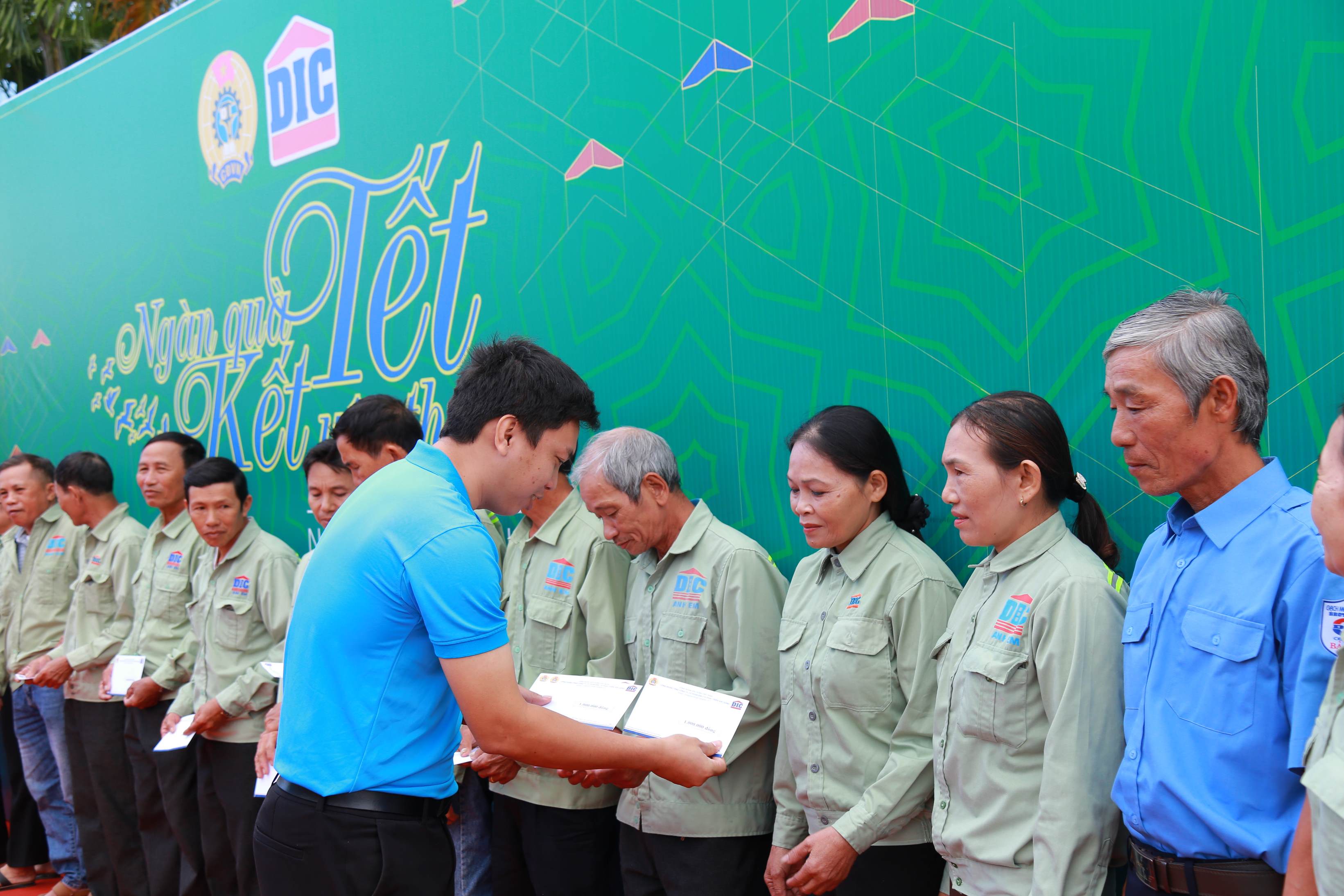 Mở đầu là chương trình “Ngàn quà Tết – Kết yêu thương”, nơi 119 phần quà giá trị từ 1 đến 2 triệu đồng với tổng giá trị 130 triệu đồng đã được trao tận tay đoàn viên, người lao động. Nguồn kinh phí do Công đoàn Tập đoàn DIC và Công đoàn Xây dựng Việt Nam hỗ trợ. Những phần quà không chỉ giúp san sẻ khó khăn về vật chất mà còn là sự động viên tinh thần kịp thời để người lao động đón Tết thêm đủ đầy, ấm áp.