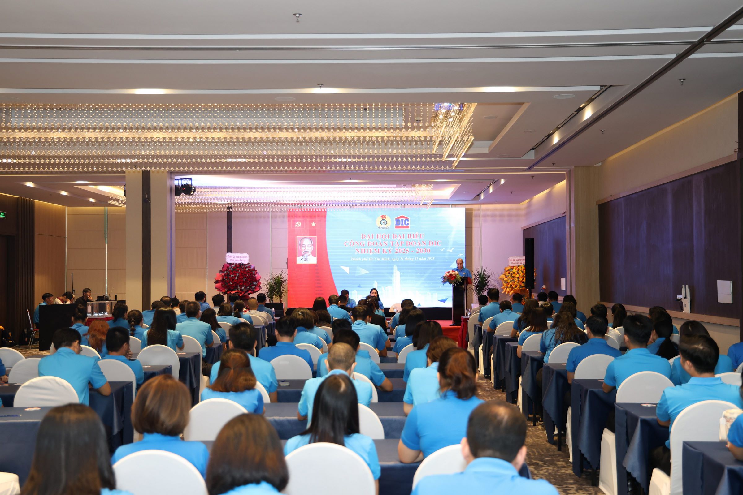 Hòa trong không khí thi đua chào mừng Đại hội Công đoàn các cấp, chiều ngày 21/11/2025, Công đoàn Tập đoàn DIC đã long trọng tổ chức Đại hội Đại biểu lần thứ VI, nhiệm kỳ 2025 - 2030. Đây là sự kiện quan trọng, thể hiện tinh thần “Đoàn kết – Dân chủ – Kỷ cương – Đổi mới – Phát triển” với mục tiêu vì quyền lợi đoàn viên và sự phát triển bền vững của Tập đoàn DIC.