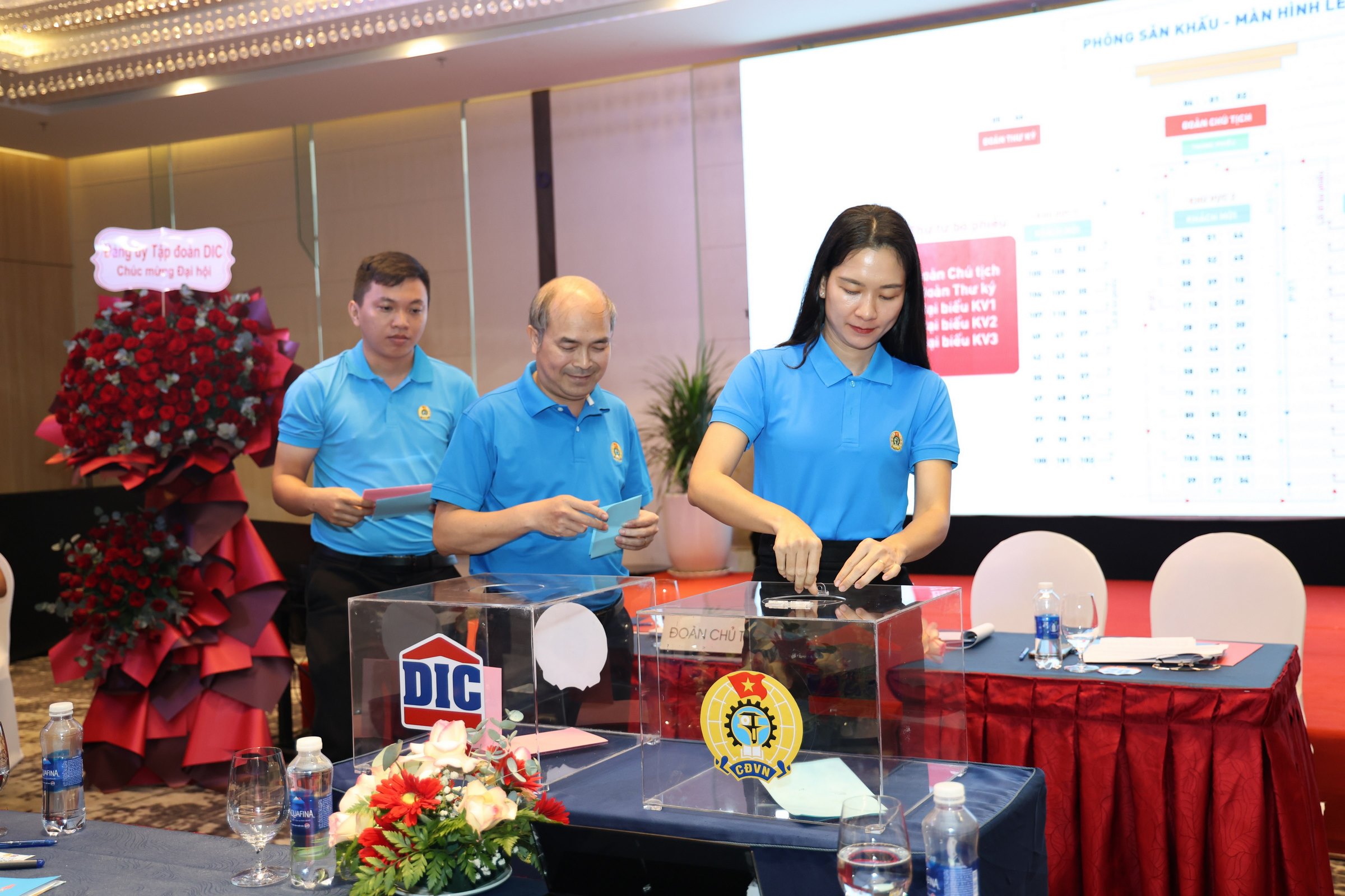 Tại phiên họp thứ nhất, Ban Chấp hành Công đoàn Tập đoàn DIC đã bầu Ban Thường vụ gồm 3 đồng chí, đồng chí Nguyễn Thị Kim Nhung tái đắc cử chức danh Chủ tịch Công đoàn Tập đoàn DIC, đồng chí Nguyễn Chiến Thắng tái đắc cử chức danh Phó Chủ tịch Công đoàn Tập đoàn DIC; bầu Ủy ban kiểm tra gồm 05 đồng chí.
